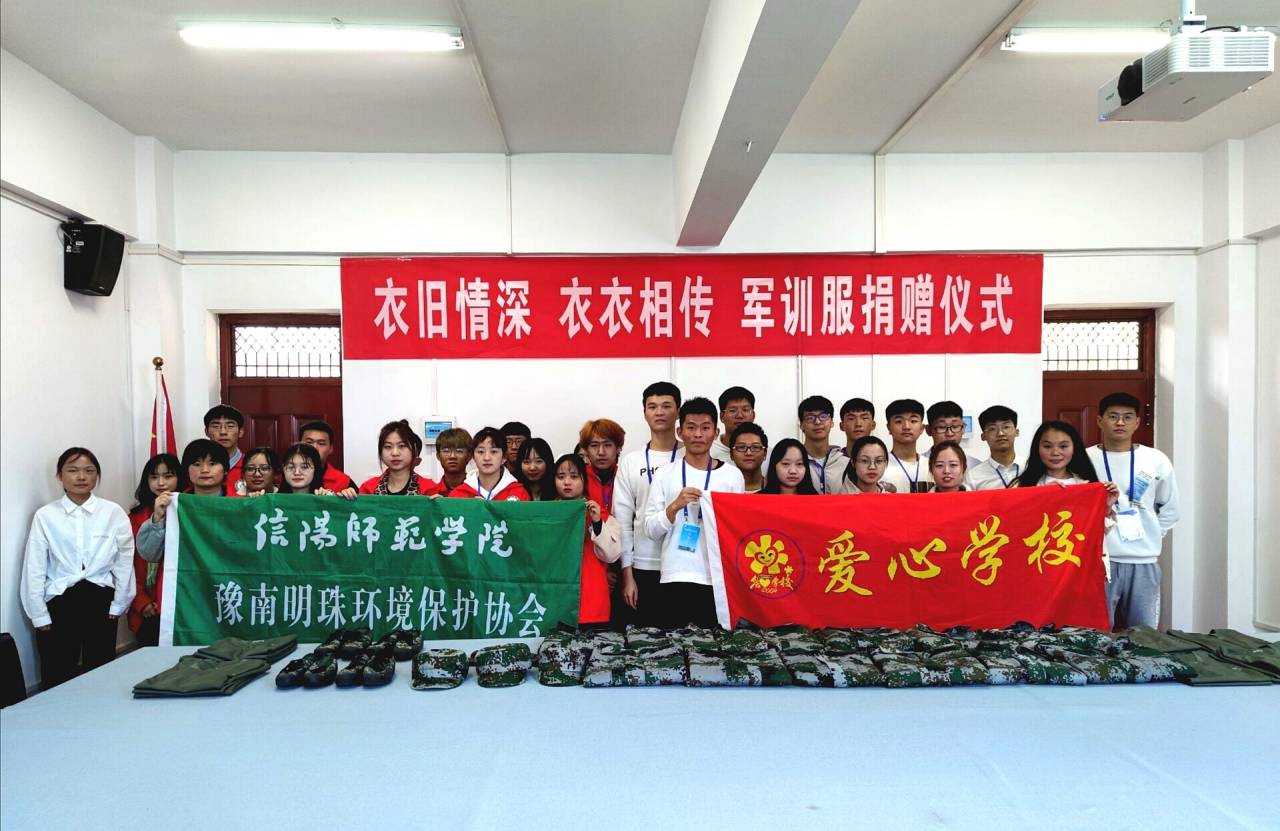 为提高大学生社会责任感与回馈社会意识,促进资源合理利用,10月28日至10月31日,由信阳师范学院后勤管理处主办,豫南明珠环境保护协会和爱心学校承办的“情暖义服,衣衣相传”义捐军训服活动在八餐小广场顺利举行。
