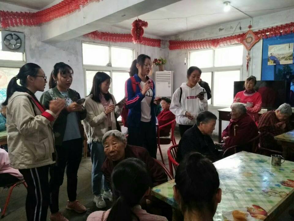 十月二十日上午,志愿者集合完毕后一起乘坐公交到达信阳市爱心老年公寓。到达之后,志愿者与老人聊天,询问爷爷奶奶们的生活情况,听爷爷奶奶讲述过去的事,心情都很愉悦。对于我们的到来多次表达喜悦和欢迎之情。聊天之后,志愿者给老人演唱了《没有共产党就没有新中国》、《打靶归来》等爷爷奶奶们熟悉和喜爱的歌曲,在演唱的过程中,社团成员积极与老人互动,爷爷奶奶们抑制不住激动的心情,主动上台表演节目,现场气氛活跃。活动结束后志愿者和院长一起合影留念。
