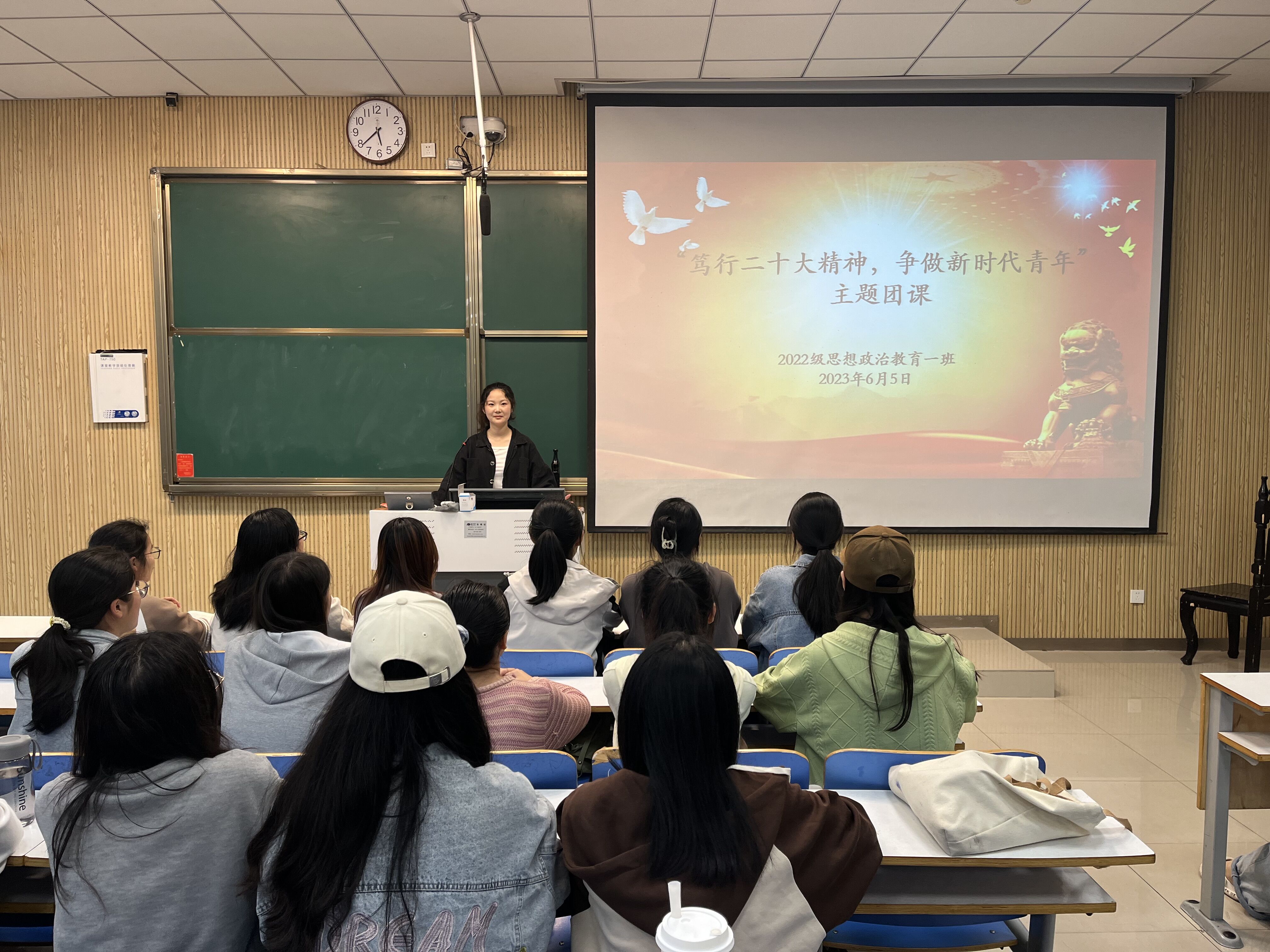 6月5日下午,金年会jinnianhuicom2022级思想政治教育一班在社科楼515教室召开“笃行二十大,争做新青年”主题团课,金年会官网2022级思想政治教育一班全体同学共同参与本次团课,团课由团支书李佳茹主持。