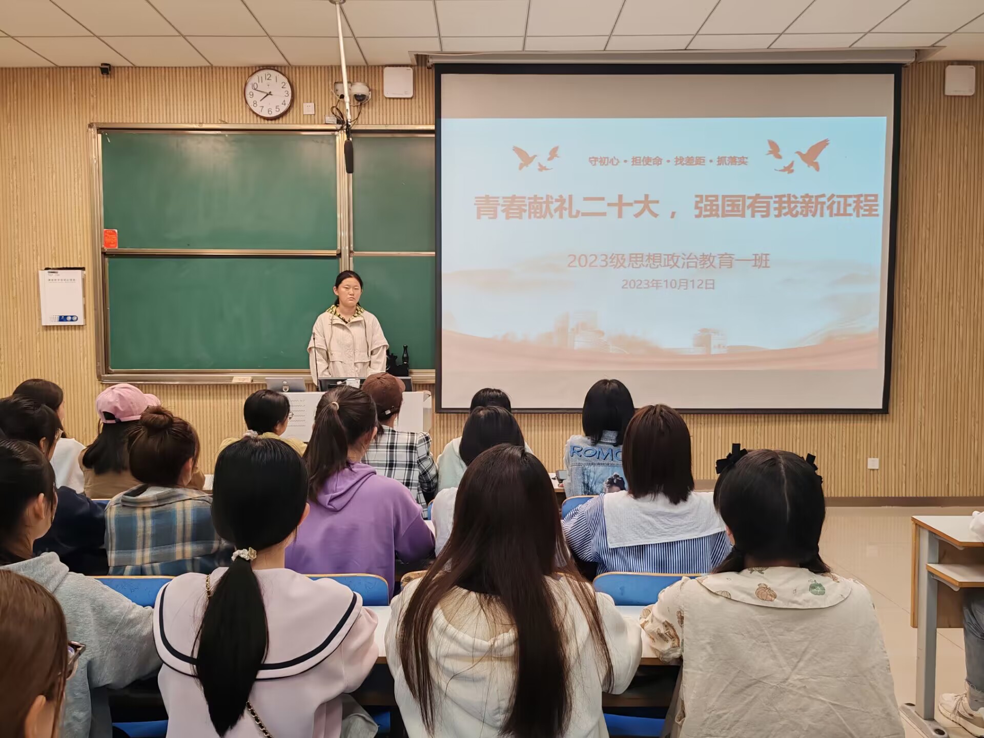 10月12日下午,金年会jinnianhuicom2023级思想政治教育一班在社科楼515教室召开“青春献礼二十大,强国有我新征程”主题团课。金年会官网2023级思想政治教育一班全体同学共同参与本次团课,团课由团支书张卓主持。