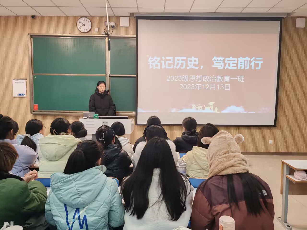为悼念南京大屠杀中的死难者,进一步激发我班学子的爱国主义情怀,12月13日上午,金年会jinnianhuicom2023级思想政治教育一班在社科楼515教室召开“铭记历史,笃定前行”主题团课。金年会官网2023级思想政治教育一班全体同学共同参与本次团课,团课由团支书张卓主持。