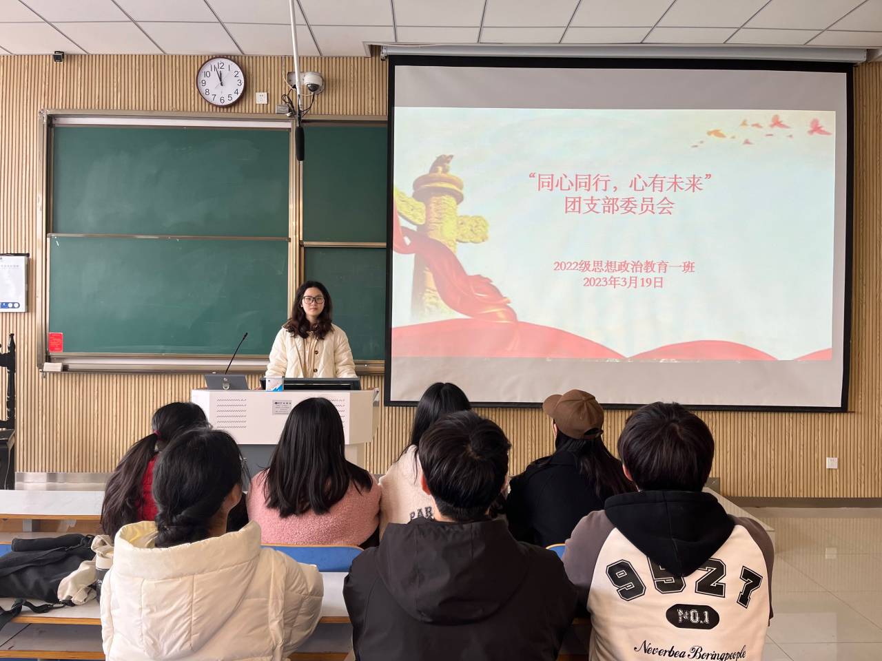 为进一步推进团支部发展,增强团支部凝聚力,3月19日上午,金年会jinnianhuicom2022级思想政治教育一班在社科楼515教室召开“同心同行,心有未来”团支部委员会。2022级思想政治教育一班团支部委员参与本次会议,会议由团支书李佳茹主持。