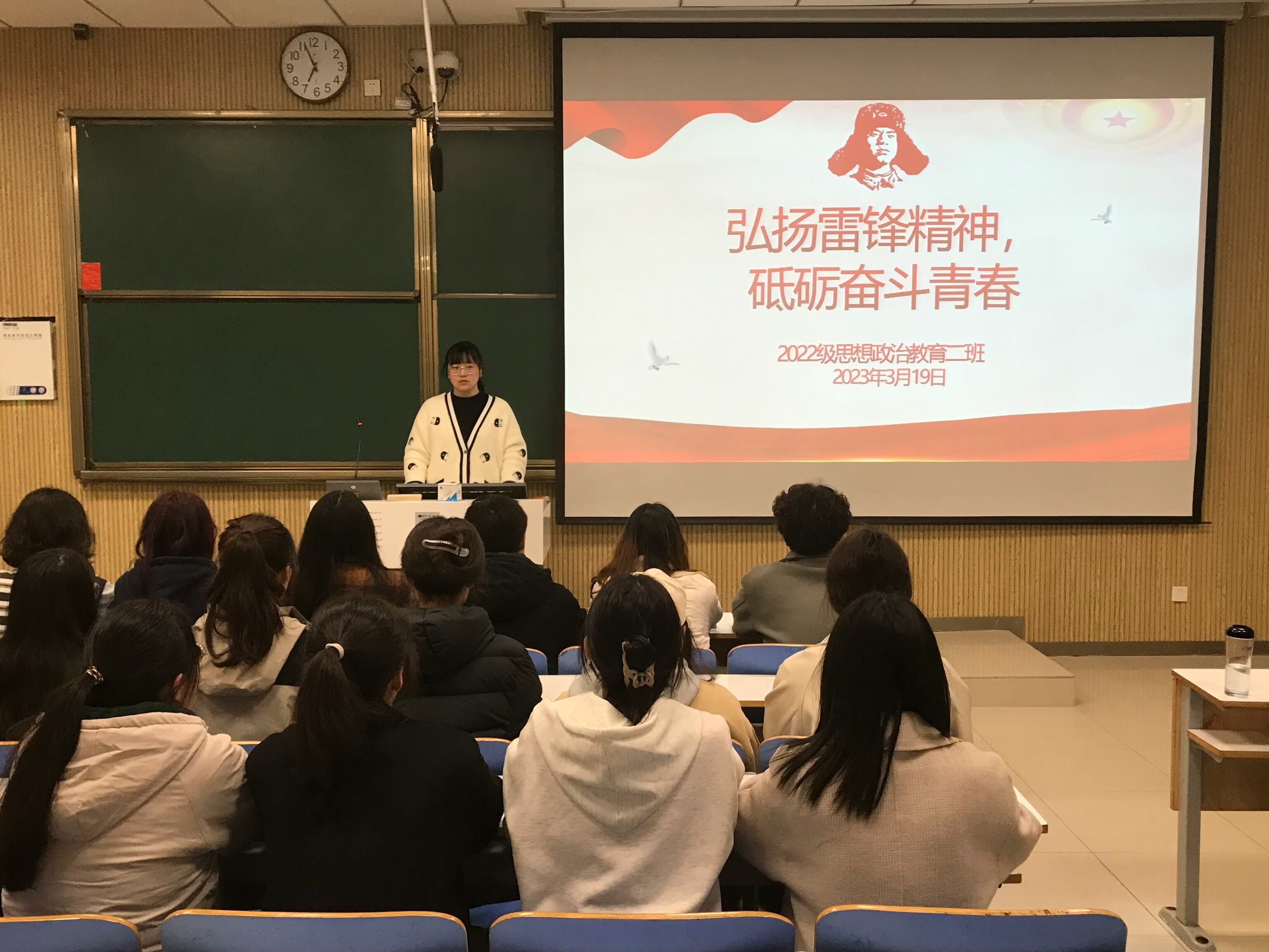 3月19日下午,金年会jinnianhuicom2022级思想政治教育二班在社科楼515教室召开“弘扬雷锋精神,砥砺奋斗青春”主题团课,2022级思想政治教育二班全体同学共同参加。团课由团支书李佳音主持。