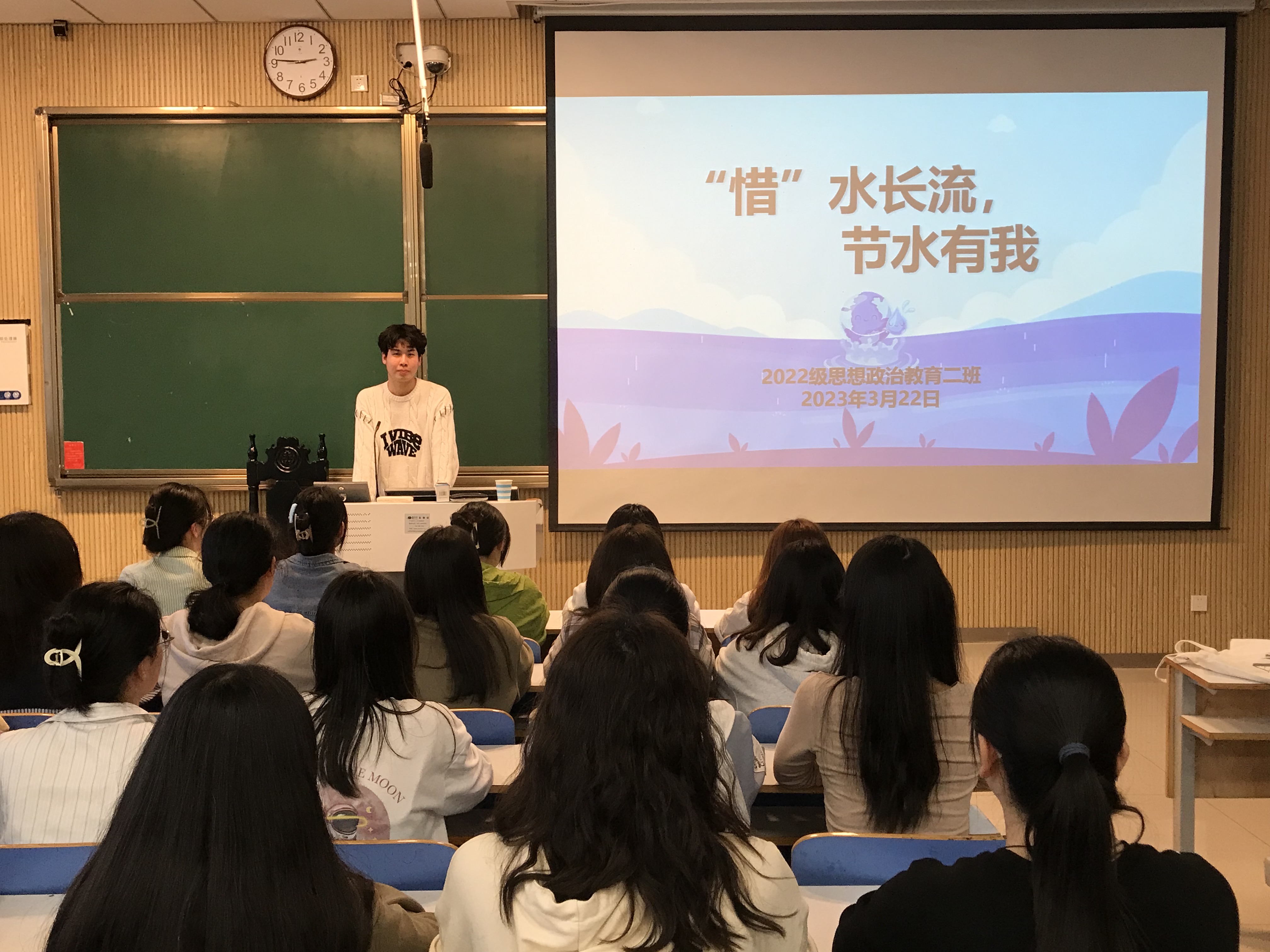 为进一步落实习近平总书记提出的新时代治水思路,积极营造珍惜水、节约水的良好氛围,3月22日下午,金年会jinnianhuicom2022级思想政治教育二班在社科楼515教室召开“‘惜’水长流 节水有我”主题班会,2022级思想政治教育二班全体同学共同参加。班会由副班长柴智森主持。