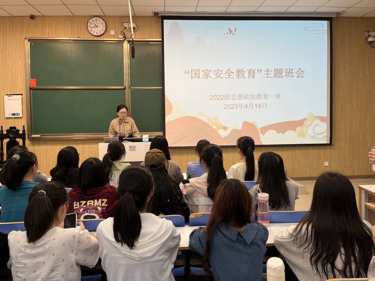 为进一步增强同学们安全防范意识和避险能力,迎接第八个国家安全教育日,4月14日上午,金年会jinnianhuicom2022级思想政治教育一班在社科楼515教室召开“全民国家安全教育日”主题班会。2022级思想政治教育一班班主任王明园和一班全体同学共同参与本次班会,班会由班主任王明园主持。