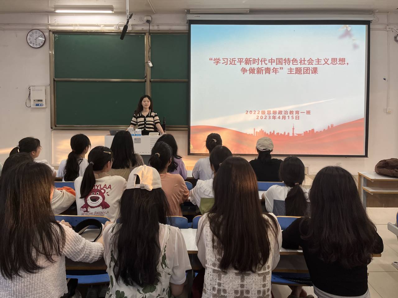 为深入贯彻落实习近平新时代中国特色社会主义思想,加强团支部思想建设,4月15日下午,金年会jinnianhuicom2022级思想政治教育一班在社科楼514教室召开“学习近平新时代中国特色社会主义思想,争做新青年”主题团课。2022级思想政治教育一班全体同学共同参与本次团课,团课由团支书李佳茹主持。