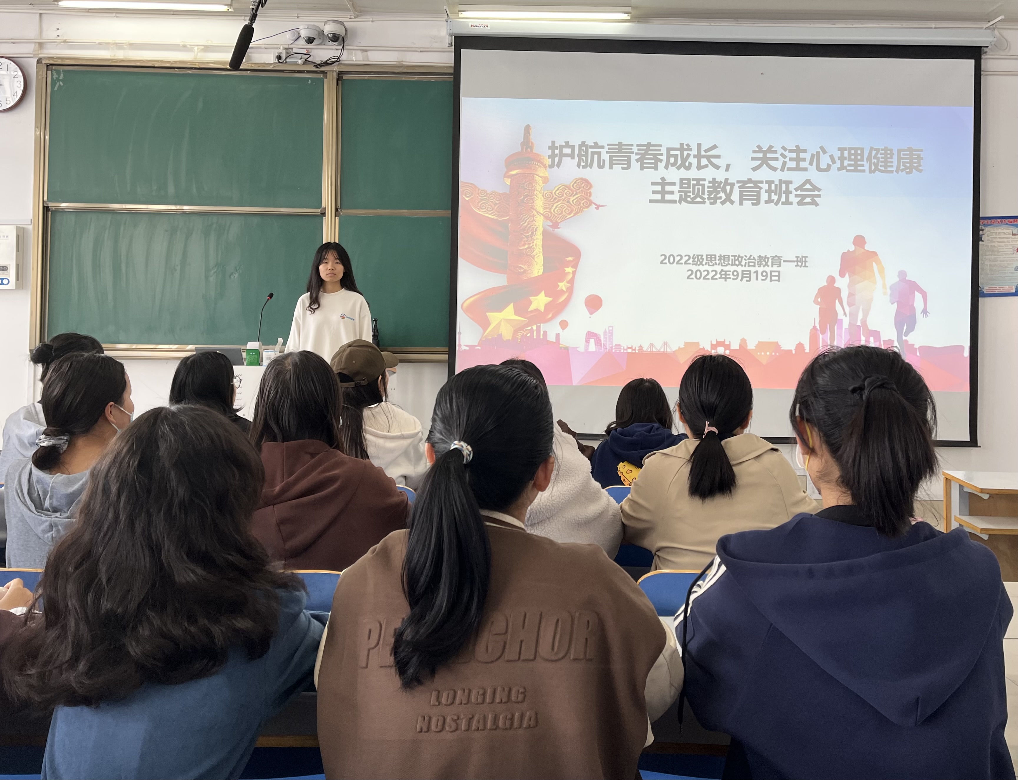 为普及心理健康知识,提升同学们的心理素质,10月24日下午,金年会jinnianhuicom2022级思想政治教育一班在社科楼514教室召开“护航青春成长,关注心理健康”主题班会。2022级思想政治教育一班全体同学参与本次班会,班会由劳动委员孙怡果主持。