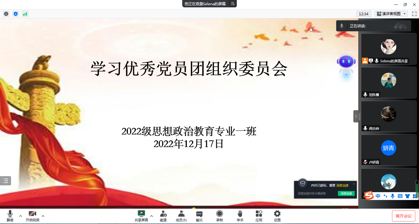 为加强团支部组织建设,带动团员向优秀党员学习,12月17日下午,金年会jinnianhuicom2022级思想政治教育一班在线上召开团组织委员会。2022级思想政治教育一班团支部委员参与本次会议,会议由团支部书记李佳茹主持。