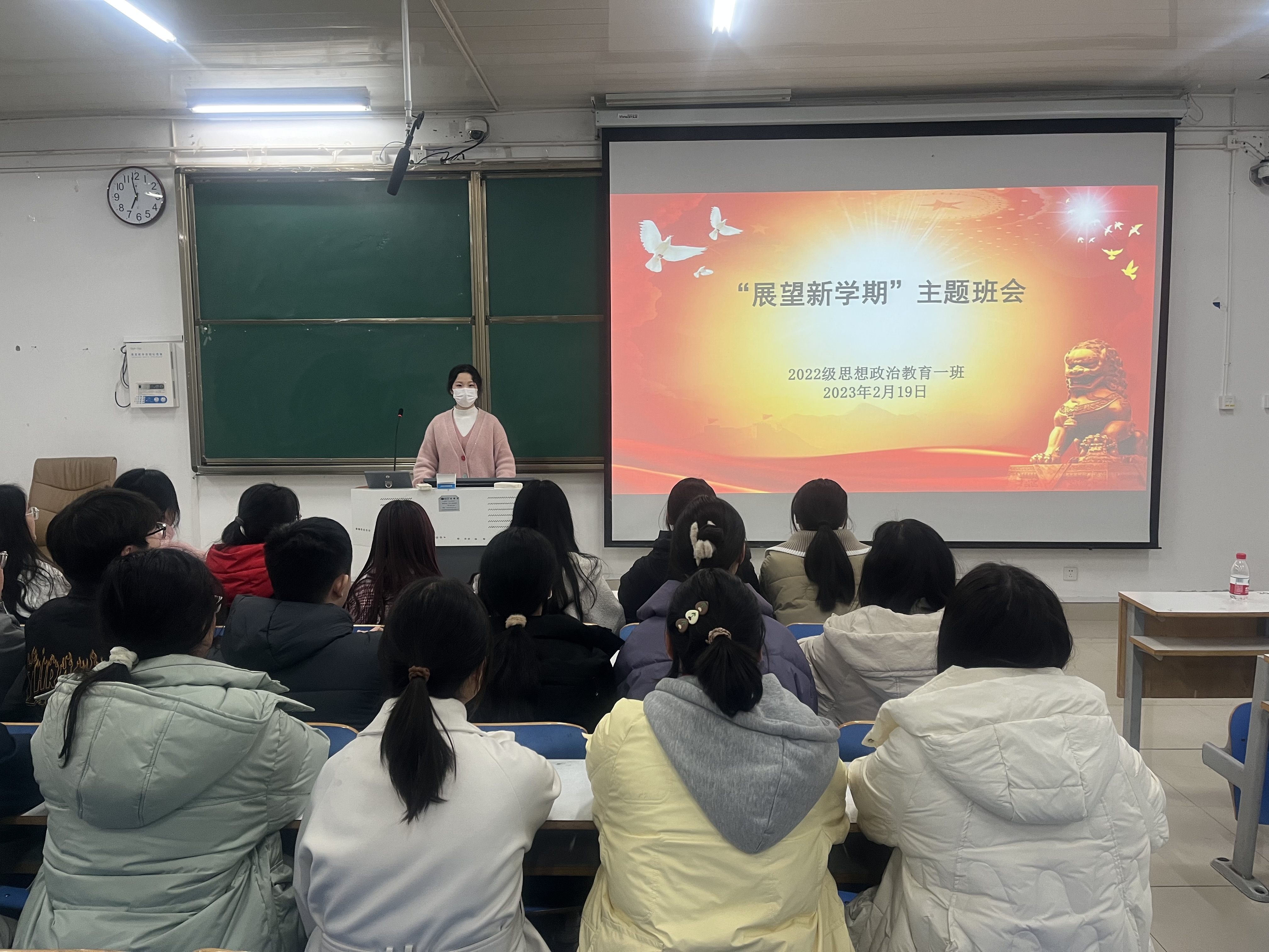 为更好地迎接新学期的到来,顺利开展各项工作,2月19日下午,金年会jinnianhuicom2022级思想政治教育一班在社科楼514教室召开“展望新学期”主题班会。2022级思想政治教育一班全体同学参与班会,班会由团支书李佳茹主持。