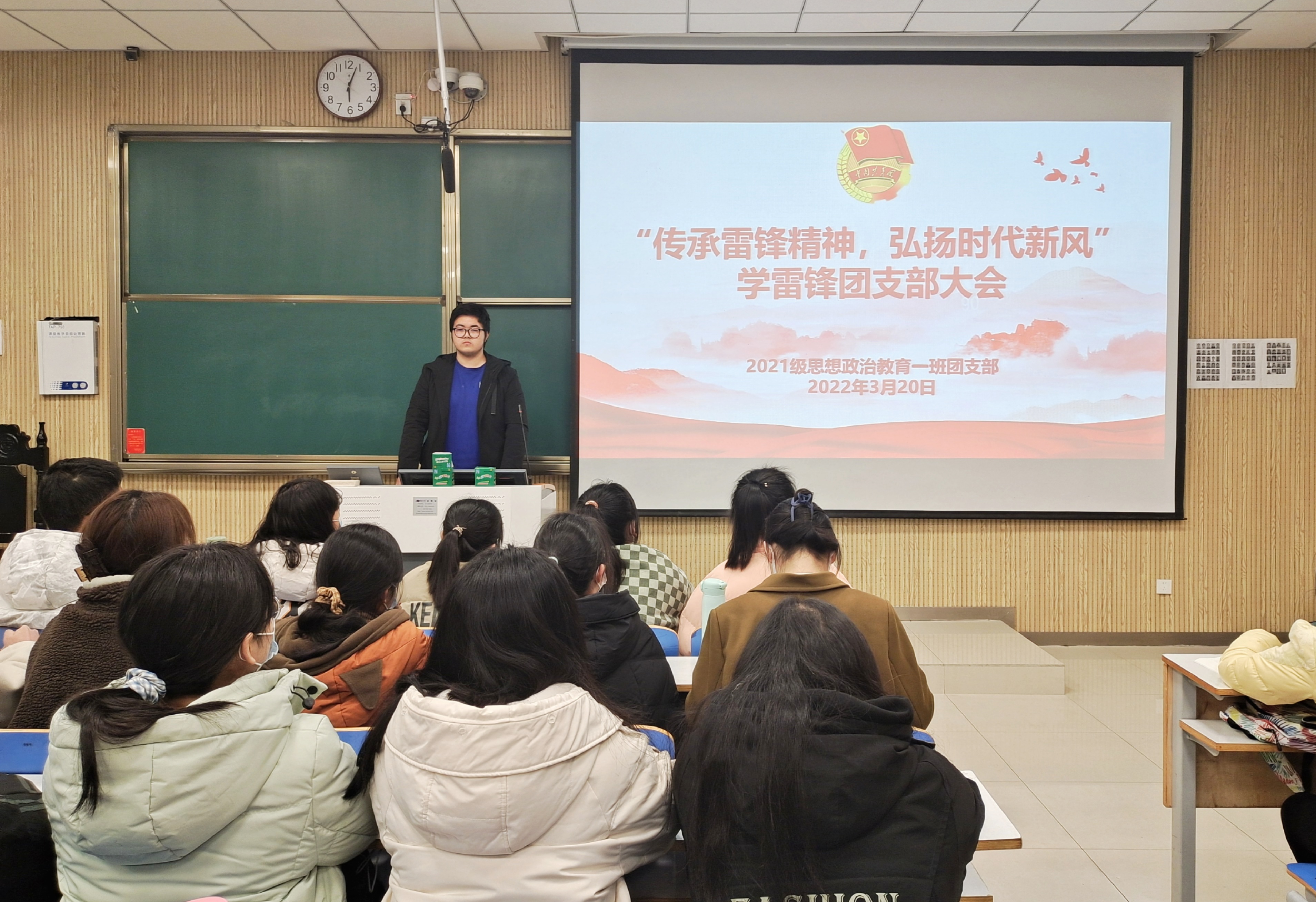 3月20日下午,金年会jinnianhuicom2021级思想政治教育一班在社科楼515教室召开“传承雷锋精神,弘扬时代新风”学雷锋团支部大会。2021级思想政治教育一班全体团员共同参加了本次会议。会议由团支书戴翰林主持。