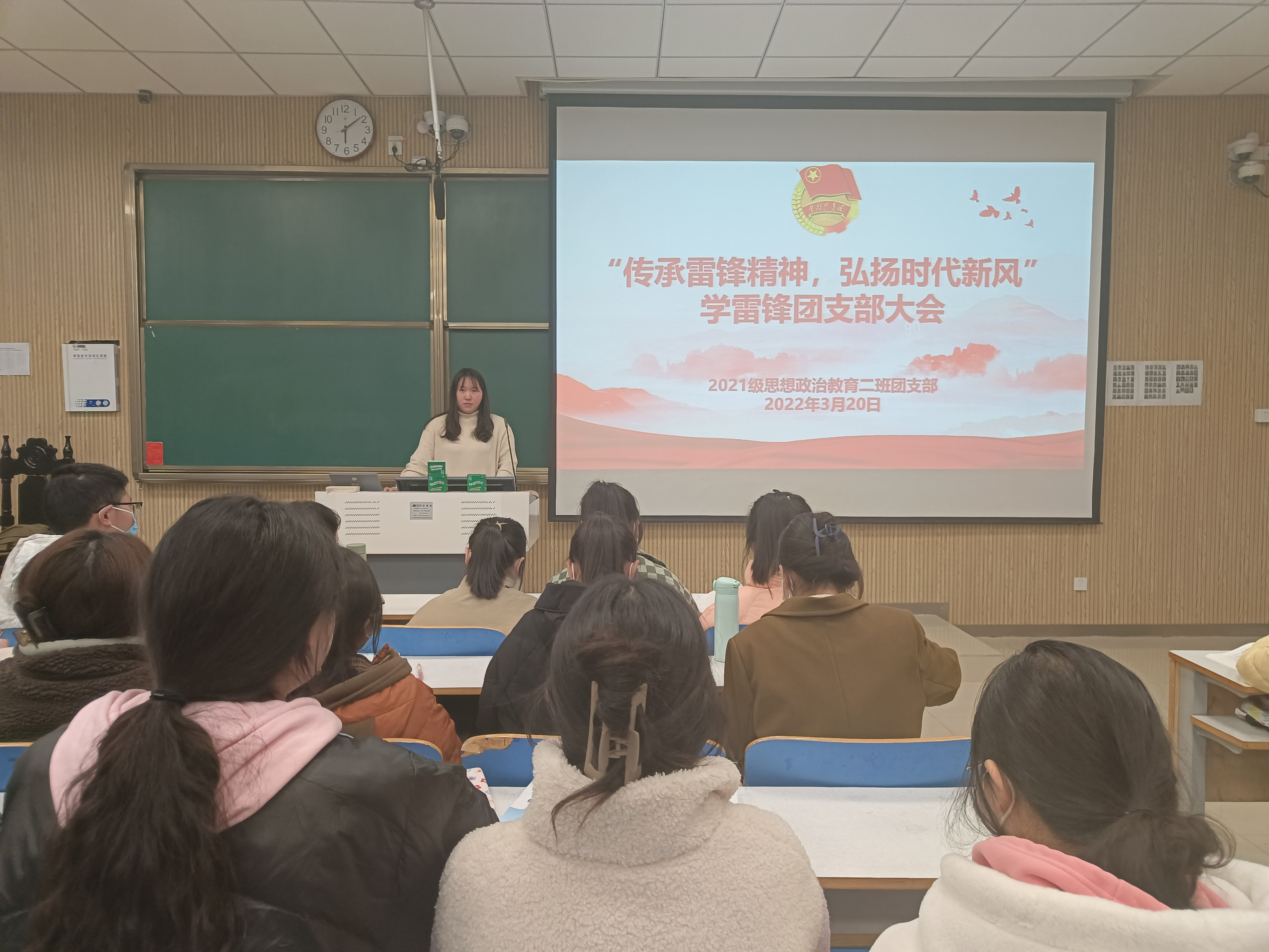 3月20日下午,金年会jinnianhuicom2021级思想政治教育二班在社科楼515教室召开“传承雷锋精神,弘扬时代新风”学习雷锋团支部大会。2021级思想政治教育二班全体团员参加此次团支部大会,团支部大会由团支书王婧欣主持。