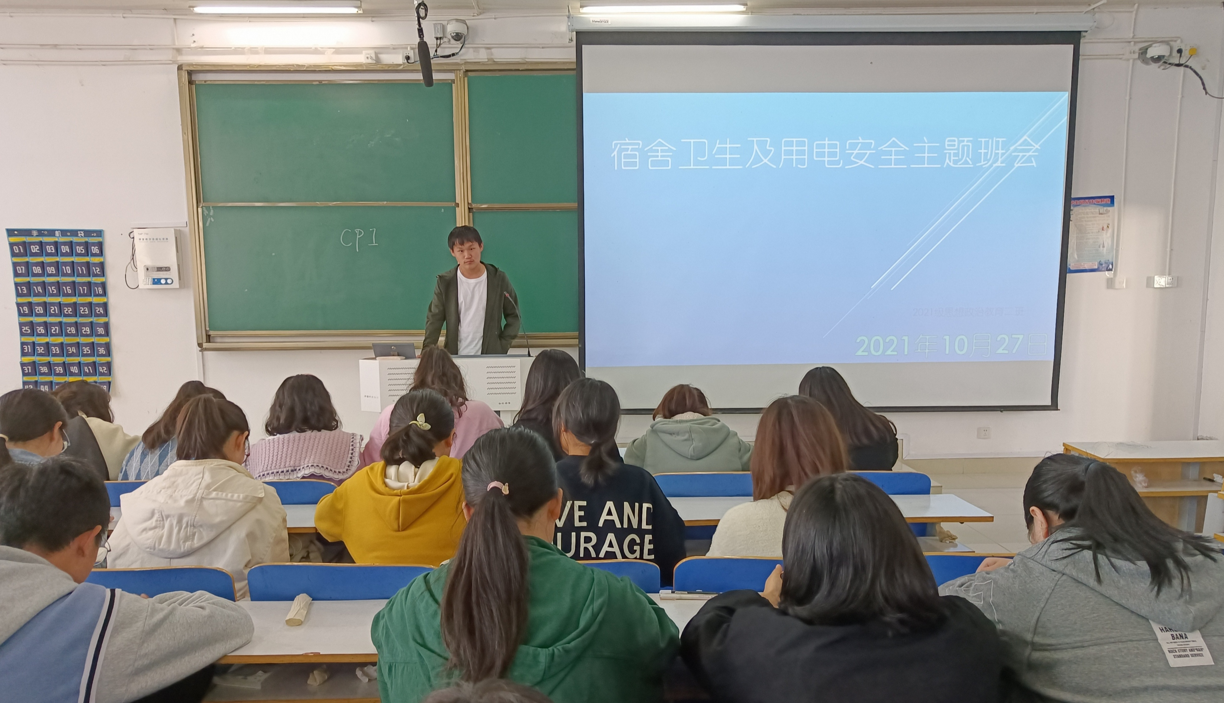为了让同学们熟知寝室管理制度,提高安全用电意识,10月26日晚,金年会jinnianhuicom2021级思想政治教育二班在社科楼514教室召开“寝室卫生及用电安全”主题班会。2021级思想政治教育二班全体成员参与此次班会。会议由团支书王婧欣和副班长任振豪主持。