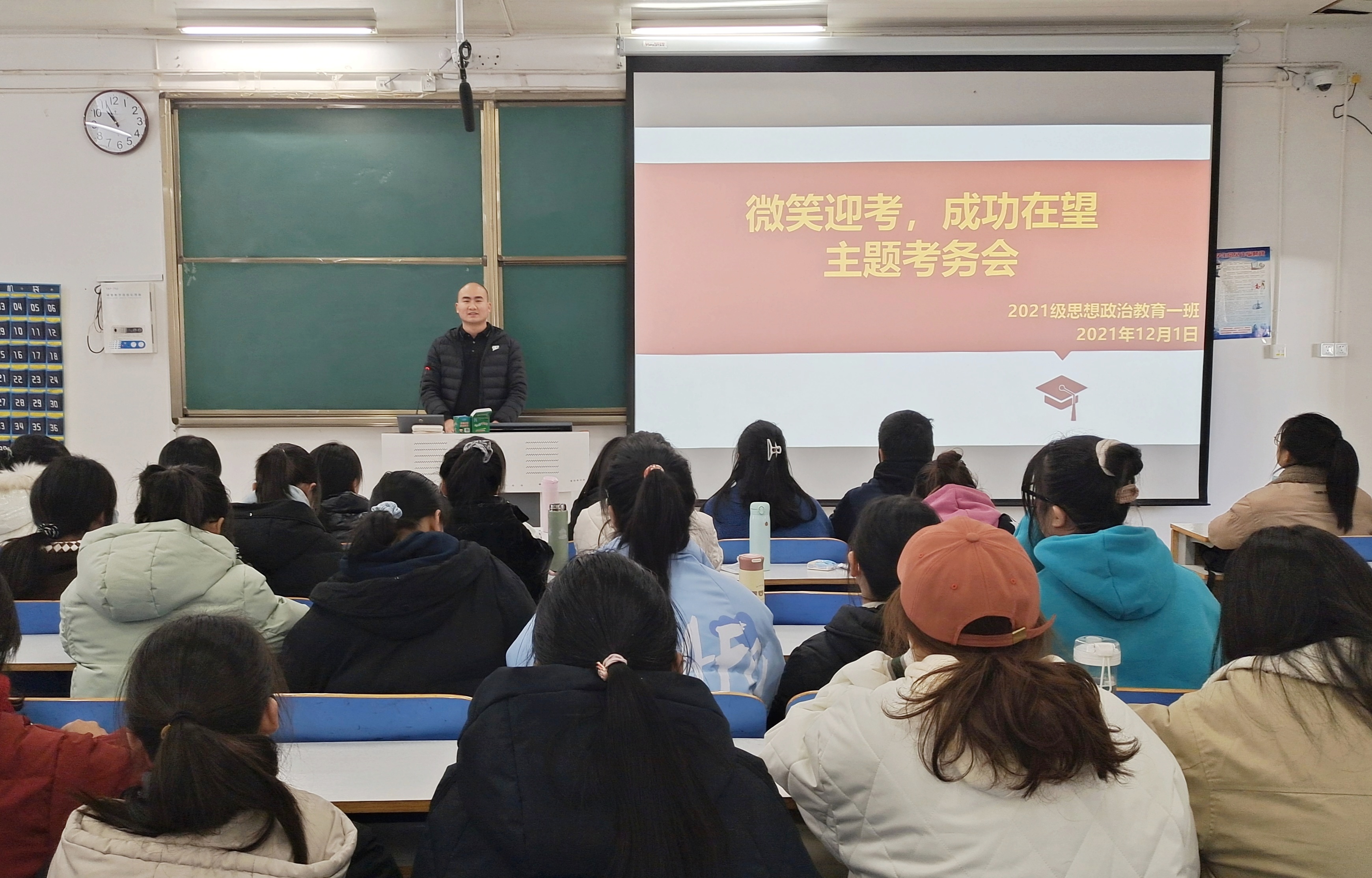 12月1日上午,金年会jinnianhuicom2021级思想政治教育一班在社科楼514教室召开“微笑迎考,成功在望”主题考务会。辅导员周文豪及2021级思想政治教育一班全体成员参加本次会议。会议由团支书戴翰林主持。