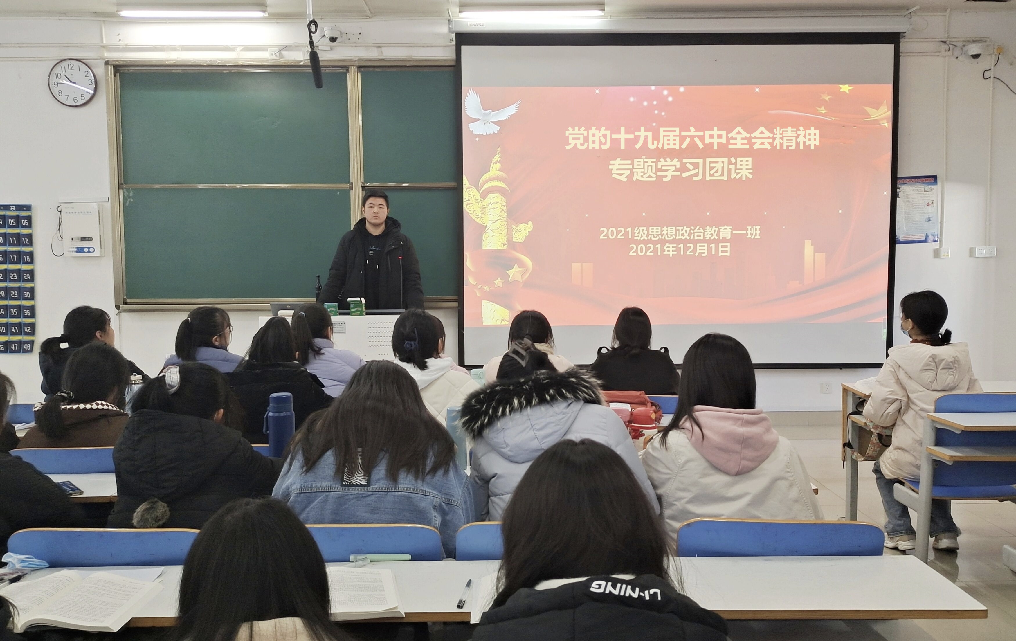 12月1日上午,金年会jinnianhuicom2021级思想政治教育一班在社科楼516教室召开党的十九届六中全会精神专题学习团课。2021级思想政治教育一班全体团员参加本次团课。团课由团支书戴翰林主持。
