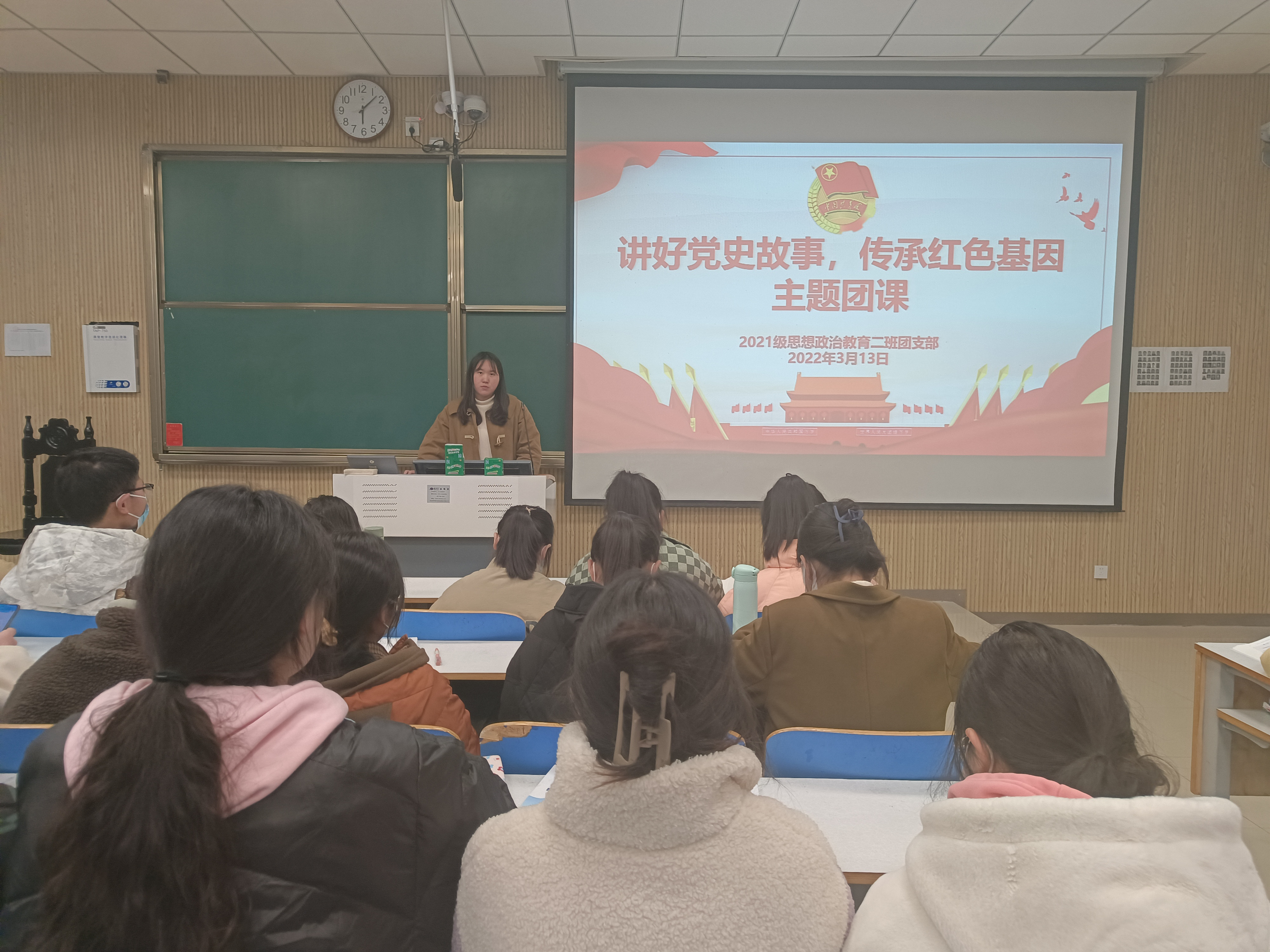 3月13日下午,金年会jinnianhuicom2021级思想政治教育二班在社科楼515教室召开“讲好党史故事,传承红色基因”主题团课。2021级思想政治教育二班全体团员参加此次团课,团课由团支书王婧欣主持。