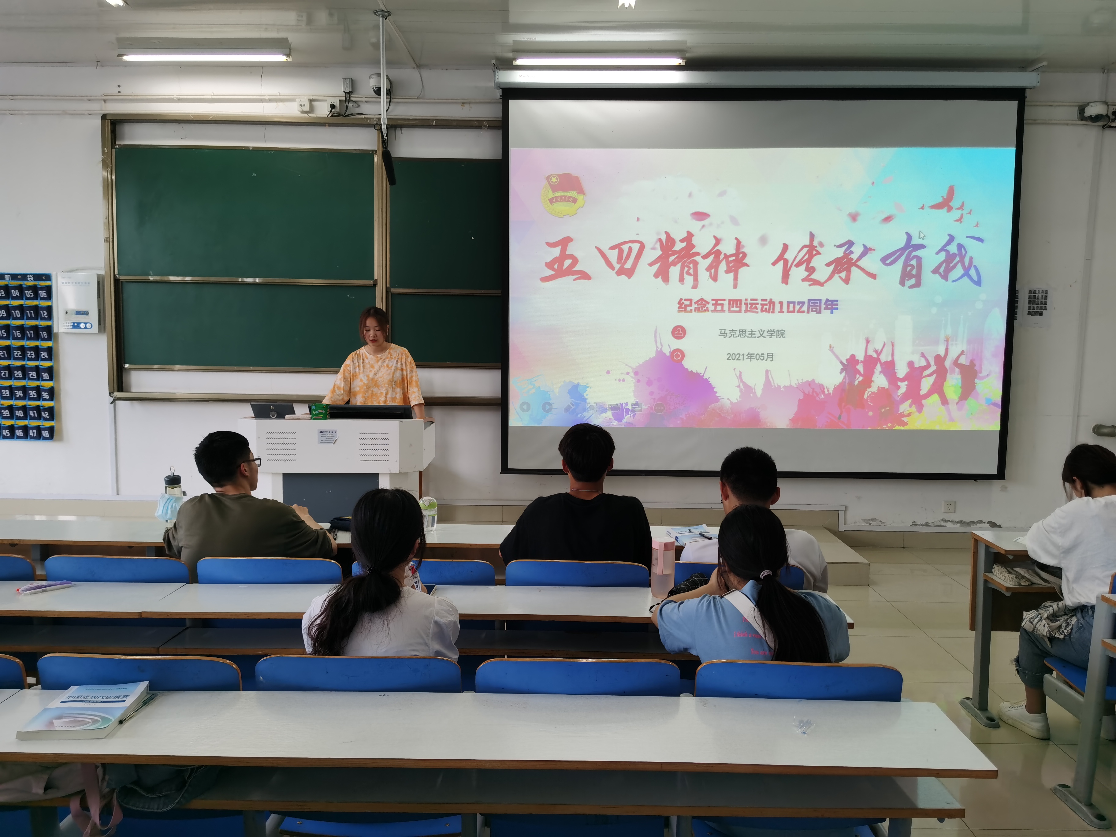 5月8日下午,2020级思想政治教育一班在社科楼516教室开展“五四精神,传承有我”主题团课。2020级思想政治教育一班全体团员参加本次团课,团课由团支书卢茜雨主持。