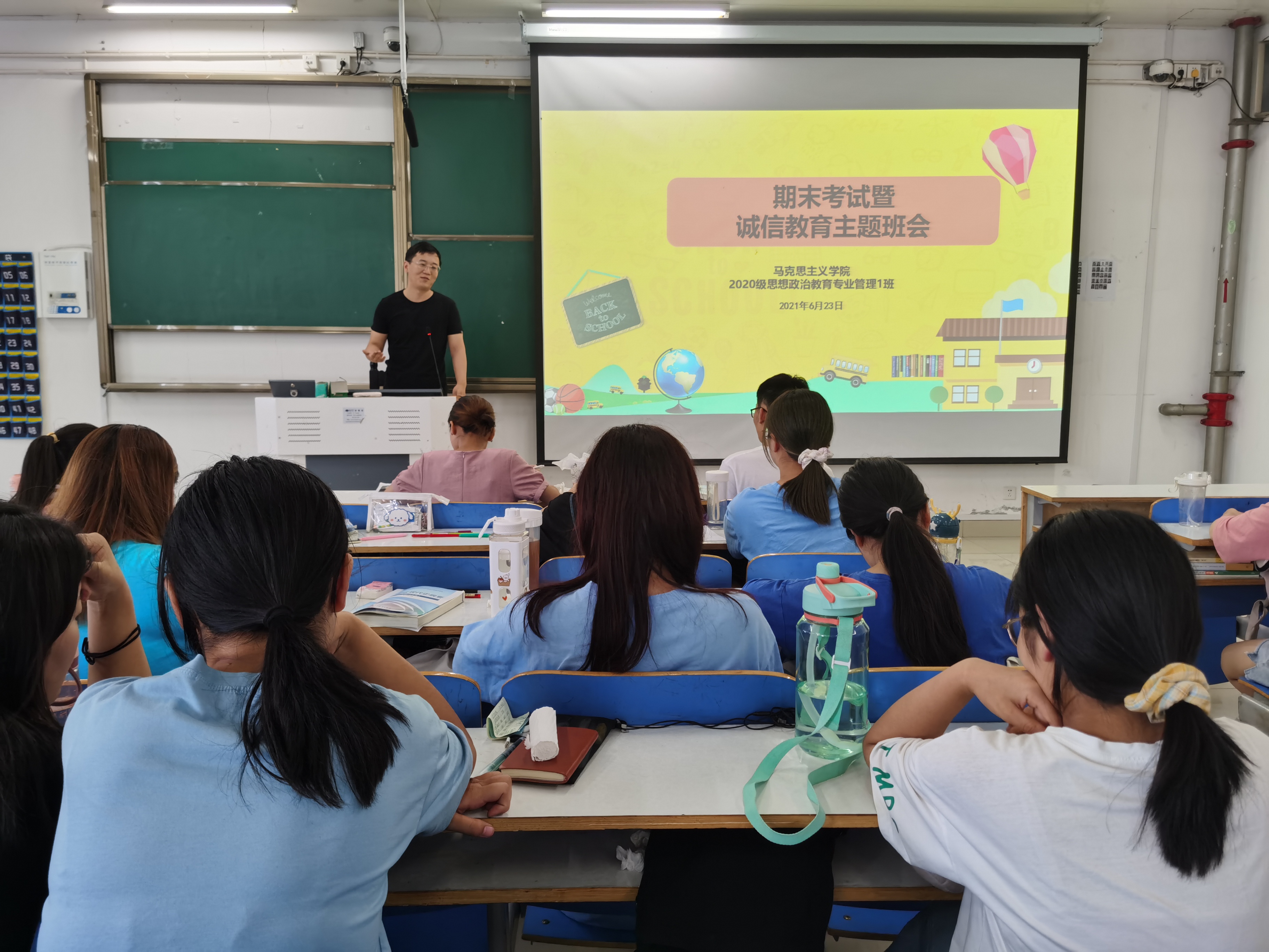 为加强学风建设,严肃考风考纪,6月23日下午,金年会jinnianhuicom2020级思想政治教育一班在社科楼516教室召开期末考试暨诚信教育主题班会。辅导员曹栋及2020级思想政治教育一班全体同学参加了本次班会,班会由辅导员曹栋主持。