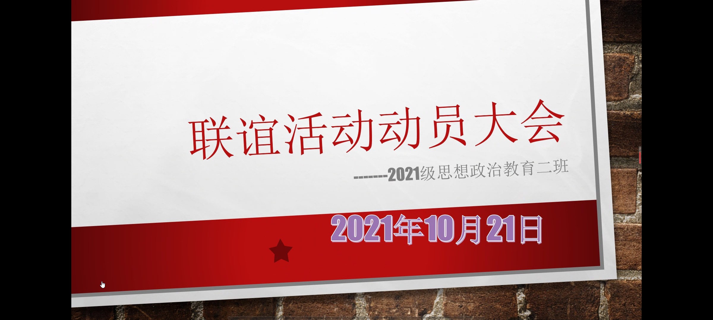 为了提高同学们参加联谊活动的积极性,10月21日晚,金年会jinnianhuicom2021级思想政治教育二班联谊活动动员会在腾讯会议上顺利召开。2021级思想政治教育二班全体同学参与此次班会。会议由团支书王婧欣和副班长任振豪主持。