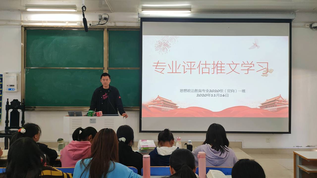 11月16日上午,金年会jinnianhuicom定向一班在社科楼514教室顺利举办“专业评估推文学习”主题班会。定向一班全体学生聆听了此次班会,班会由团支书朱紫峰主持。