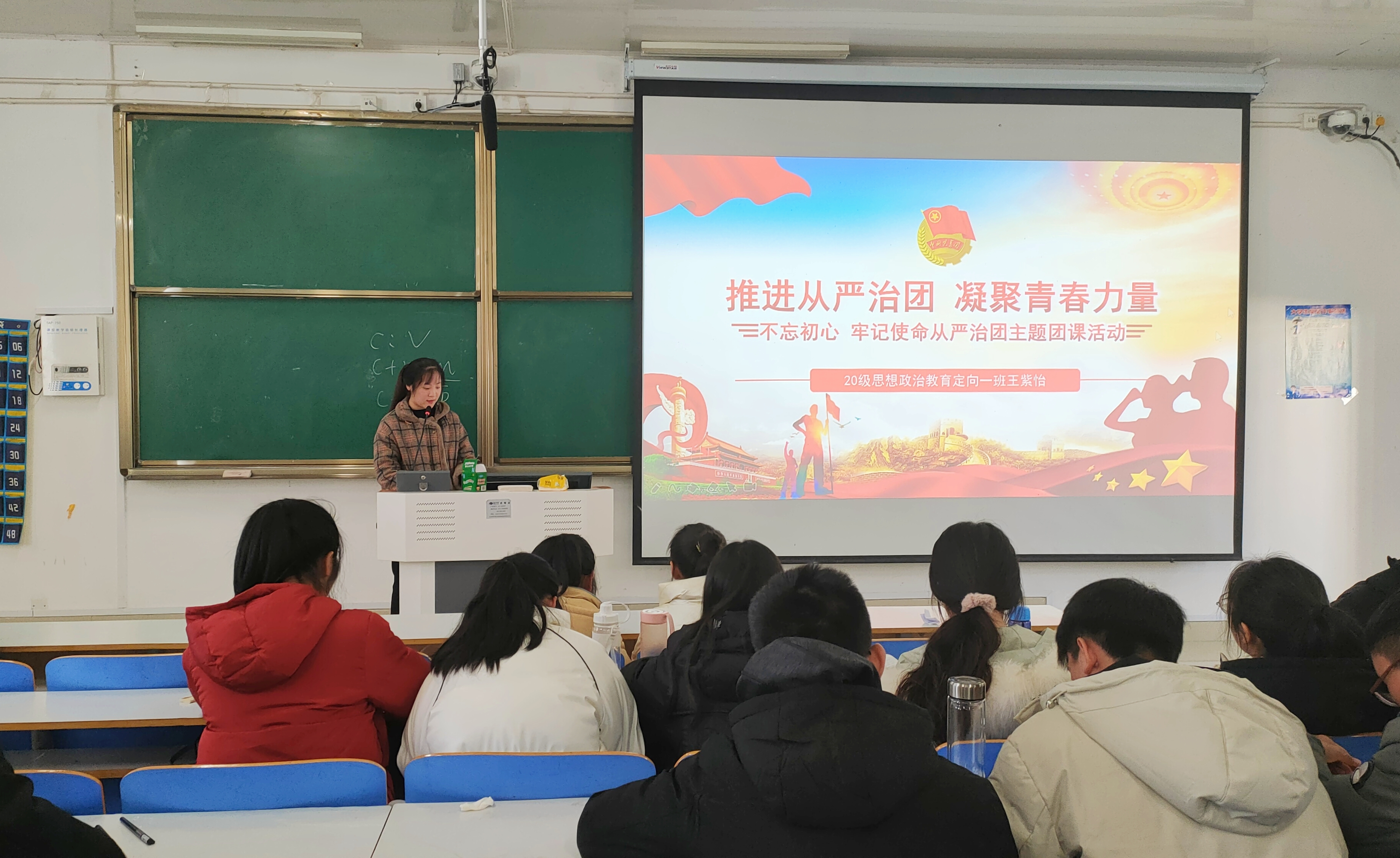 王紫怡围绕“不忘初心、牢记使命、从严治团”三个部分展开宣讲。她强调,团员在学习、工作中要充分发挥自身的先锋模范作用,立足于本职工作,同时积极协助其他同志,确保工作的顺利进行。接着,她向同学们强调了团的严明纪律。全团必须树立强烈的管团、治团意识,坚持原则,敢于担当,严明组织纪律,强化监督问责,确保工作落实到位,制度执行到位。最后,王紫怡提示同学们,做新时代优秀共青团员,必须做到有理想、敢担当、有创新、肯付出,紧跟时代步伐,用创新精神来洗涤心灵。在做事、思考问题上敢于探索新的规律和方法。
