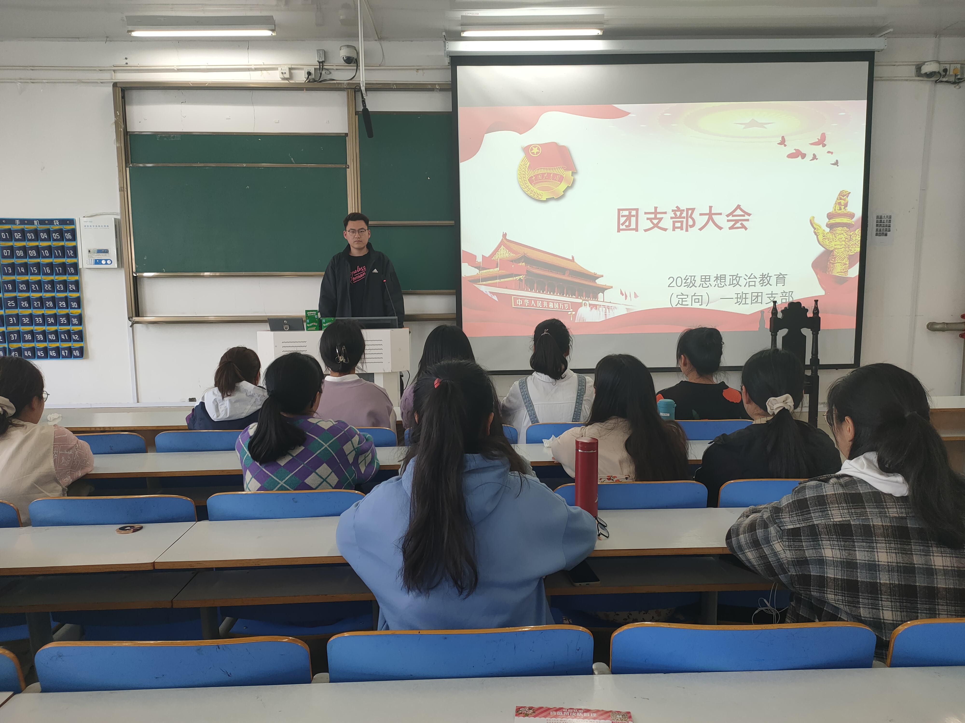 3月24日下午,金年会jinnianhuicom思想政治教育(定向)一班在社科楼516教室顺利举办团支部大会。2020级思想政治教育(定向)一班全体同学聆听了此次会议,会议由朱紫峰主持。