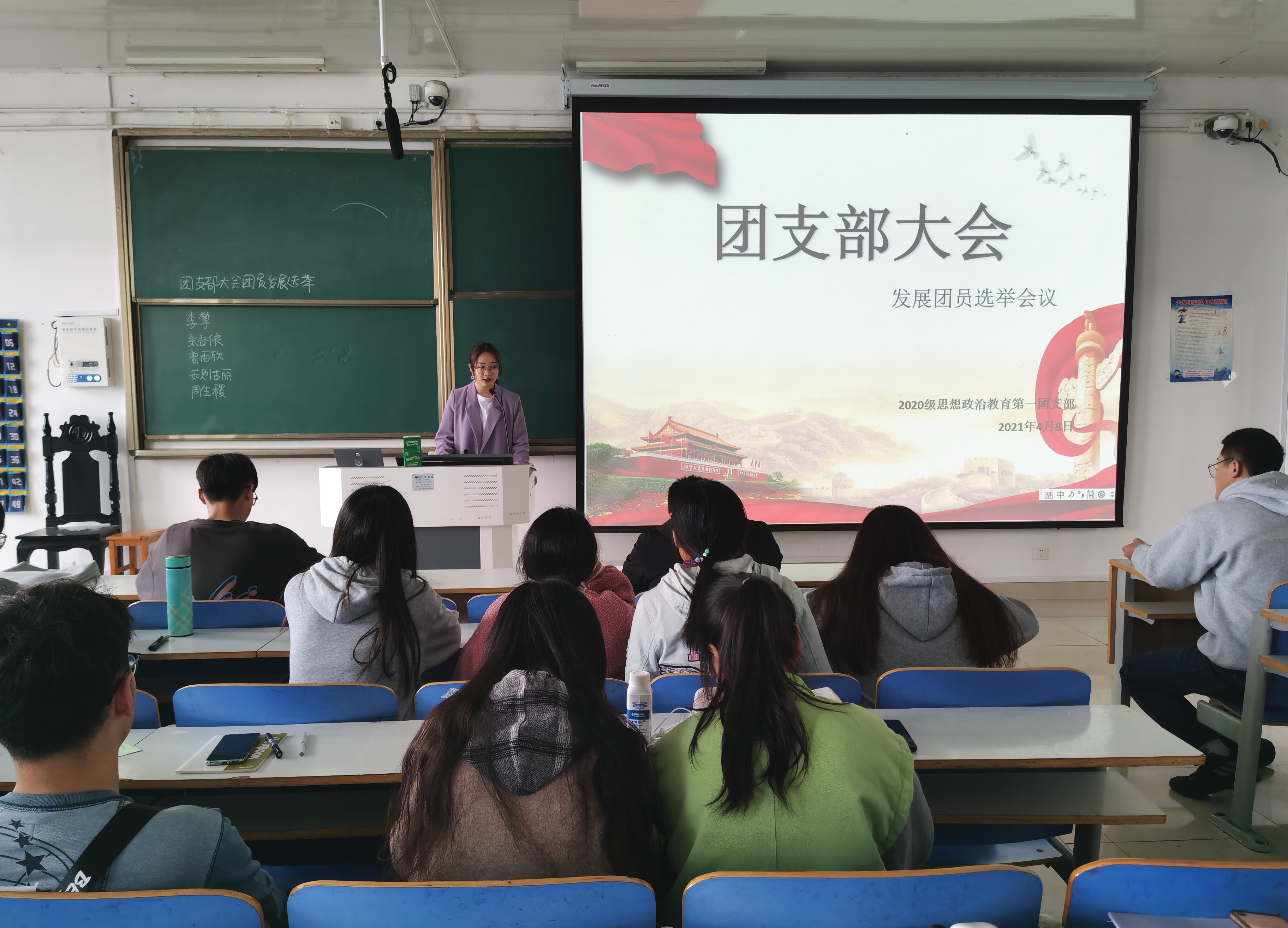 4月8日上午,金年会jinnianhuicom2020级思想政治教育一班在社科楼514教室召开“发展团员选举”团支部大会。2020级思想政治教育一班全体同学参加了本次团支部大会。大会由团支书卢茜雨主持。