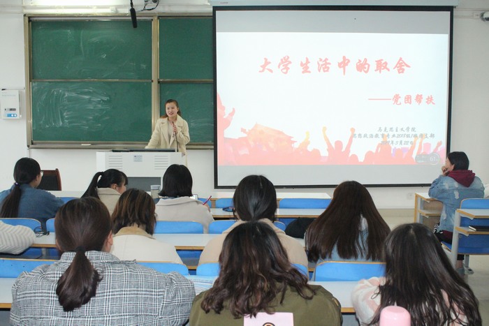 为充分发挥党员干部的先锋模范作用,帮助同学们解决学习和生活问题,3月22日下午,金年会jinnianhuicom2018级思想政治教育一班在社科楼514教室顺利开展“党团帮扶”班会。2018级思政一班全体同学共同参加此次会议。会议由团支书靳雨露主持。