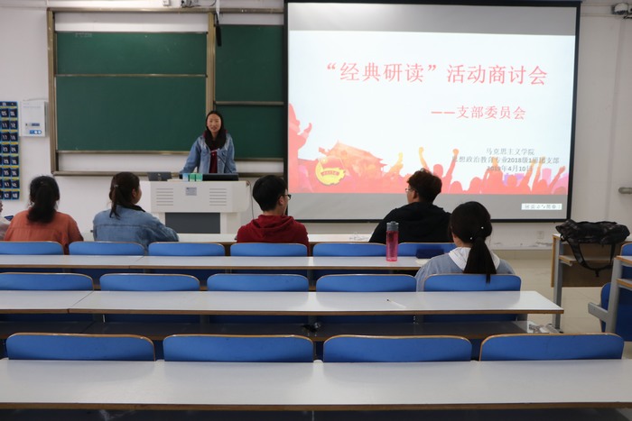 4月10日下午,金年会jinnianhuicom2018级思想政治教育一班在社科楼516教室顺利开展“经典研读”支部委员会。2018级思想政治教育一班全体支部委员共同参加此次会议。会议由团支书靳雨露主持。
