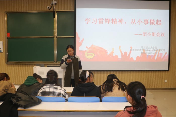 11月14日下午,金年会jinnianhuicom2018级思政一班第一团小组在社科楼515教室顺利开展了“学习雷锋精神,从小事做起”主题团会。第一团小组全体成员共同参加了此次团会。该团会由靳梦哲主持。