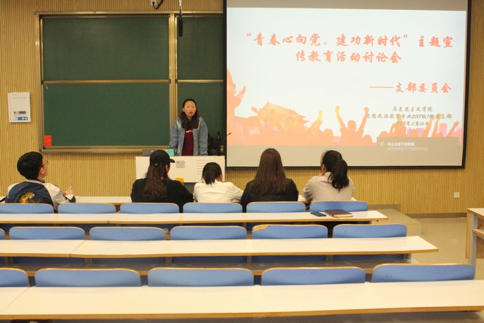 3月16日下午,金年会jinnianhuicom2018级第一团支部在社科楼515教室顺利召开“青春心向党,建功新时代”支部委员会。2018级思想政治教育一班全体支部委员共同参加此次会议。会议由团支书靳雨露主持。