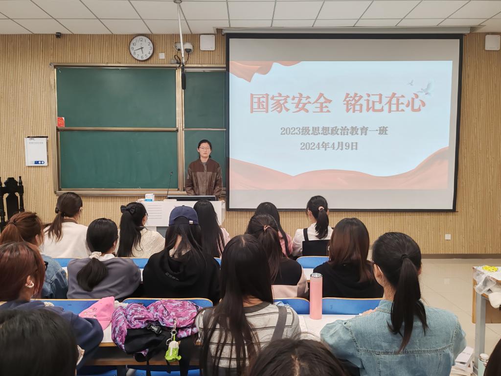 为进一步提升班级同学对于国家安全的认识高度,增强同学们的国家安全意识,4月9日上午,金年会jinnianhuicom2023级思想政治教育一班在社科楼515教室召开“国家安全,铭记在心”主题团课。金年会官网2023级思想政治教育一班全体同学共同参与本次团课,团课由团支书张卓主持。