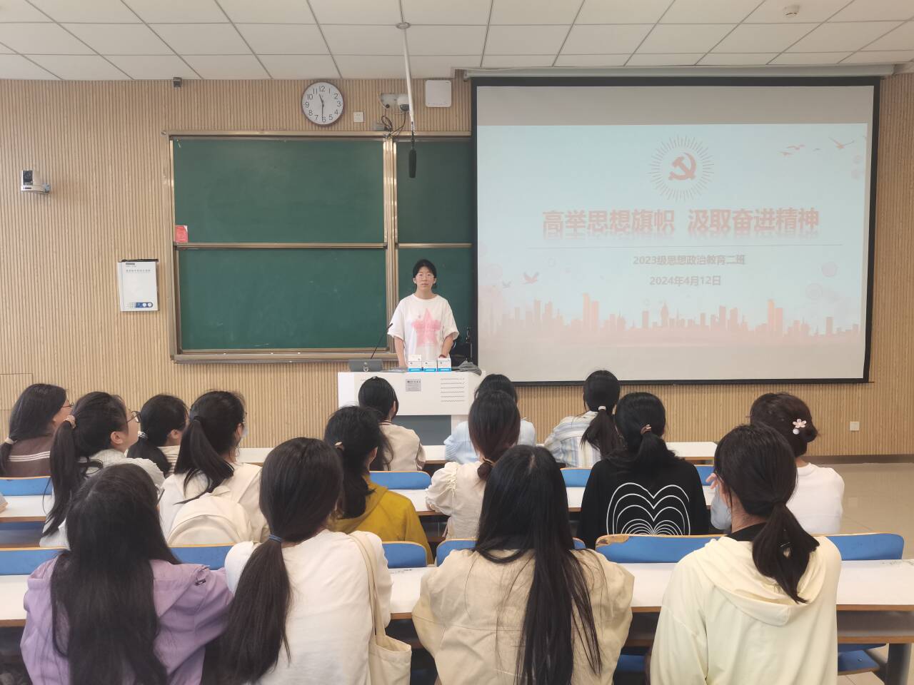 为更好发挥思想统一的基础性作用,提振广大团员和青年的信心与决心,4月12日上午,金年会jinnianhuicom2023级思想政治教育二班在社科楼515教室召开“高举思想旗帜,汲取奋进力量”主题团课。本次团课由团支书王慜初主持,全体二班同学参加。