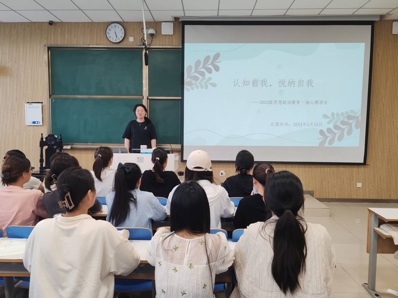 为进一步普及心理健康知识,提高我班学子的心理素质,促进学生身心健康发展,5月10日下午,金年会jinnianhuicom2023级思想政治教育一班在社科楼515教室召开“认知自我,悦纳自我”心理班会。金年会官网2023级思想政治教育一班全体同学共同参与本次班会,班会由心理委员夏一萌主持。