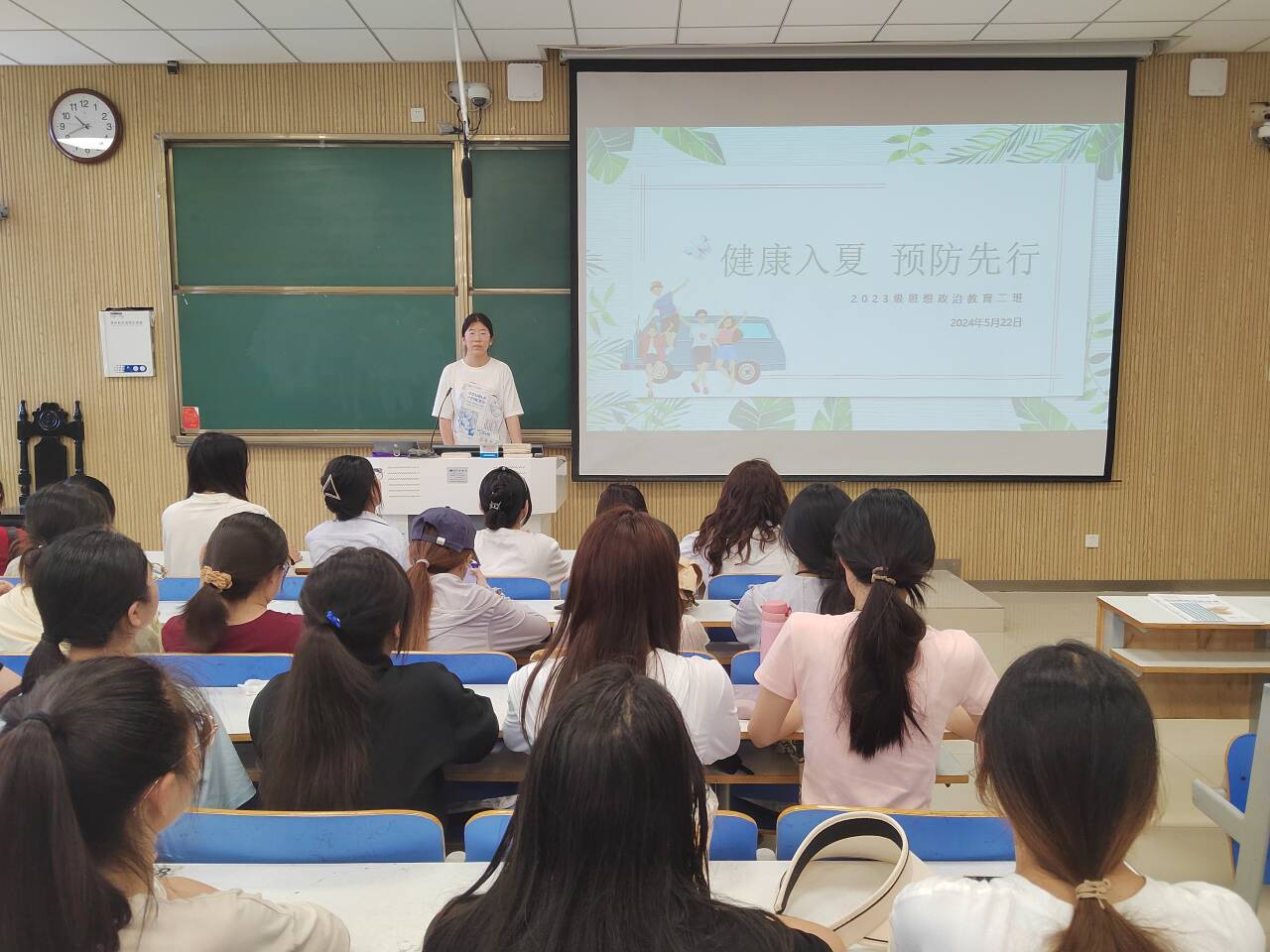 为保证学生健康度过夏季,做好夏季预防工作,5月22日下午,金年会jinnianhuicom2023级思想政治教育二班在社科楼515教室召开“健康入夏,预防先行”主题班会。本次班会由班长王慜初主持,全体二班同学参加。