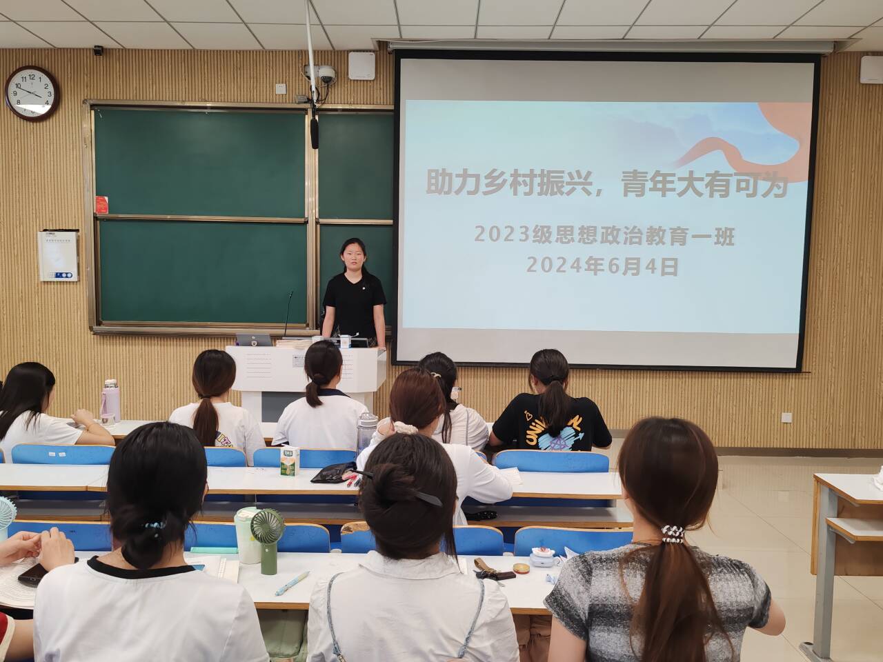 为落实立德树人,以劳育人的发展要求,6月4日下午,金年会jinnianhuicom2023级思想政治教育一班在社科楼515教室召开“助力乡村振兴,青年大有可为”主题团课。金年会官网2023级思想政治教育一班全体同学共同参与本次团课,团课由团支书张卓主持。