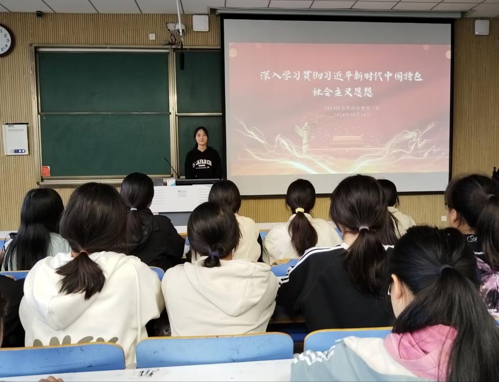 为引导学生深入学习贯彻习近平新时代中国特色社会主义思想,10月18日上午,金年会jinnianhuicom2024级思想政治教育一班在社科楼515教室召开“深入学习贯彻习近平新时代中国特色社会主义思想”主题团课。团课由团支书李冉主持,2024级思想政治教育一班全体成员共同参加。