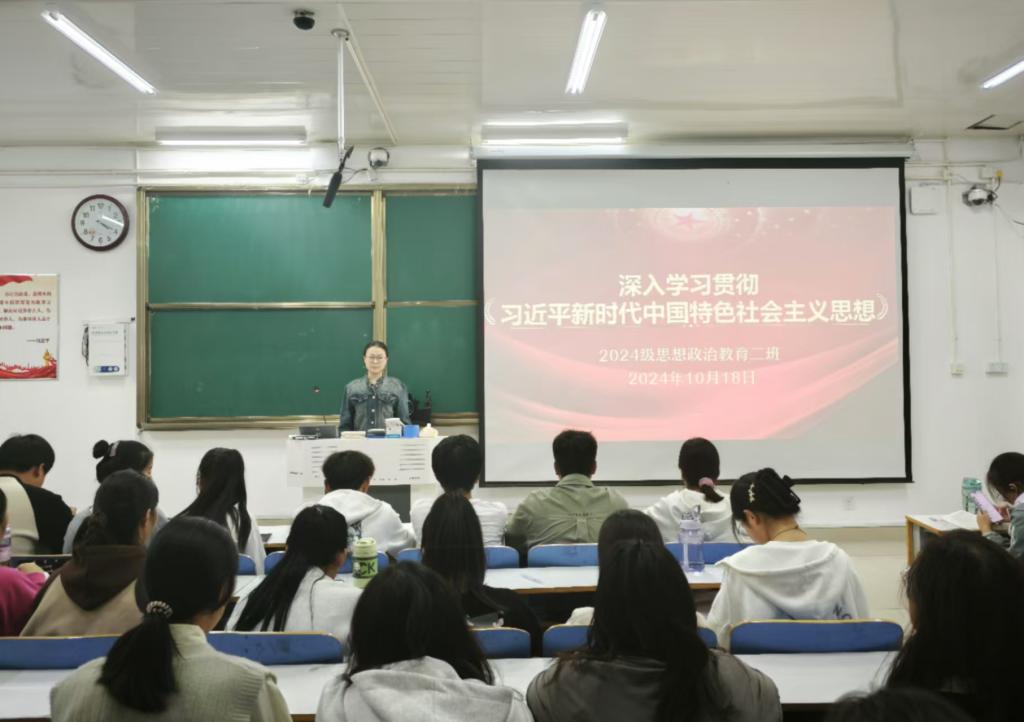 为深入学习贯彻习近平新时代中国特色社会主义思想,切实激发青年的使命感与责任感,10月18日下午,金年会jinnianhuicom 2024 级思想政治教育二班 于社科楼514教室举办了 “深入学习新思想,青春奋进新时代” 主题团课活动。此次团课由团支书王志颖主持,二班全体同学共同参与。