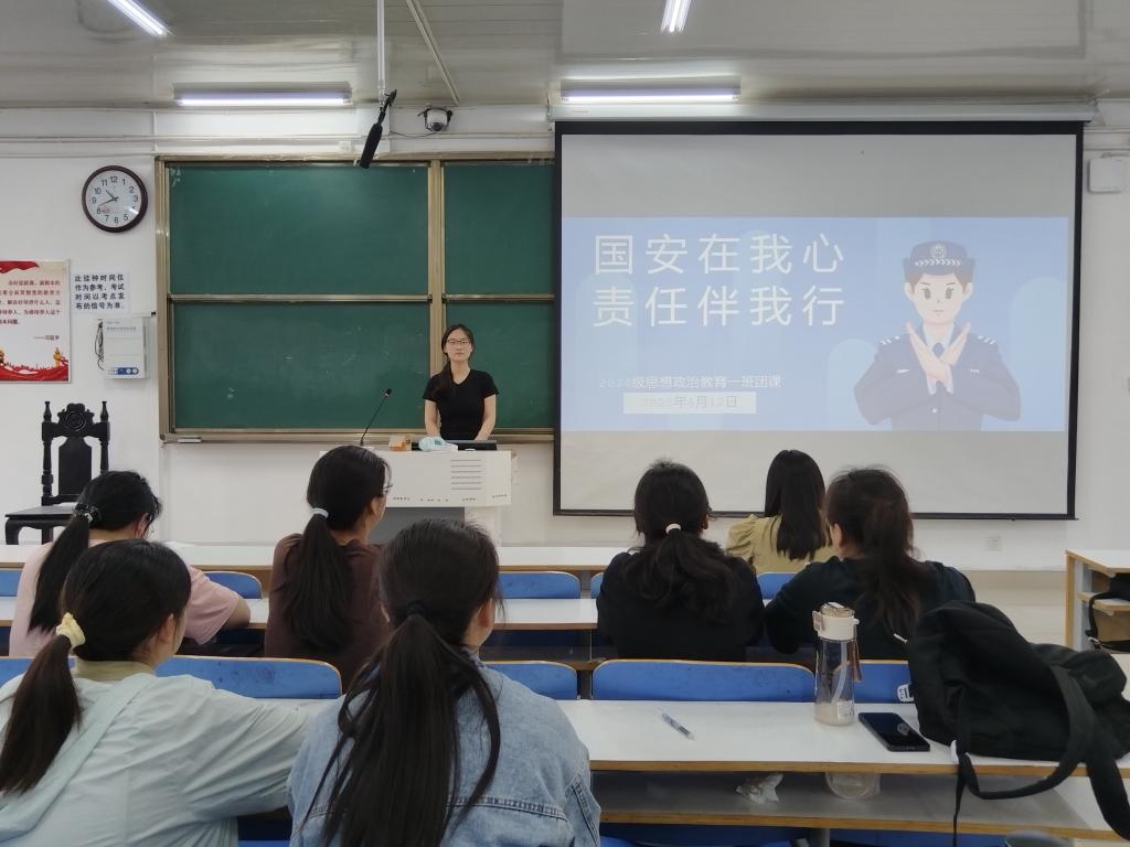 团课伊始,李冉借助PPT为大家详细讲解了国家安全的内涵及其重要性,她表示,当今国际局势复杂多变,国家安全事业面临着各种挑战。我们青年一代更要在此时代背景下敢担当、敢作为、敢争先,为国家安全事业增砖添瓦。随后,李冉组织大家就“国家安全与青年担当”这一话题展开讨论。其中,张伊凡表示,国家安全的维护要从小、从细、从今做起,我们在积极传播国家安全知识的同时自身也要保持警惕,敢于检举危害国家安全的行为,将青年力量化为维护国家安全的第一道防线。最后,李冉总结道,国家安全、重于泰山,希望同学们能时刻牢记维护国家安全的责任,以实际行动为国家安全事业贡献力量,展现出青年一代的担当与风采。