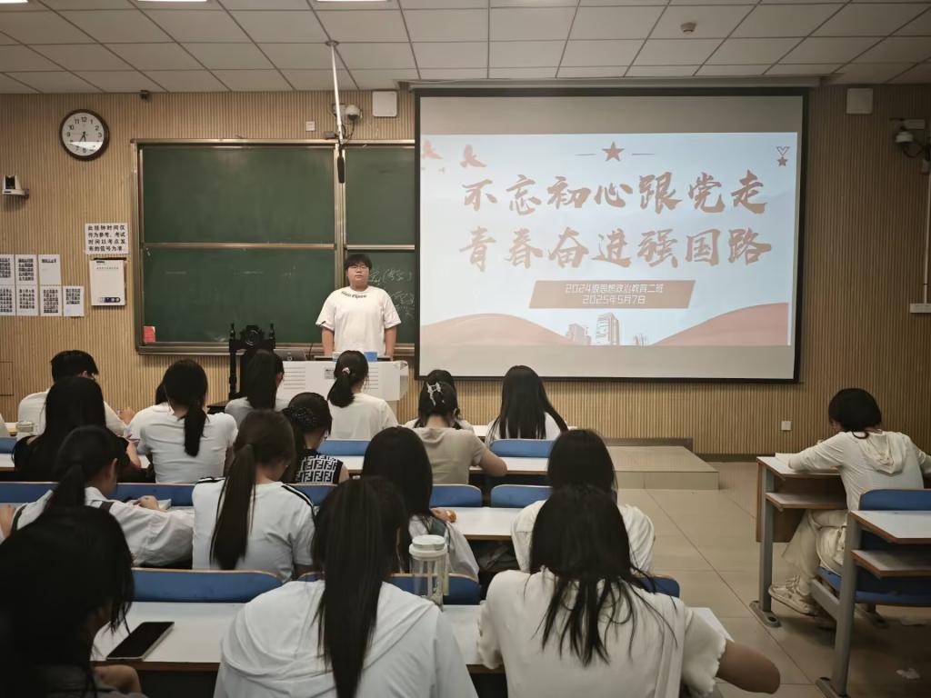 为引导青年学生牢记初心使命,坚定理想信念,以实际行动践行党的领导和时代担当,5月7日下午,金年会jinnianhuicom2024级思想政治教育二班在社科楼515教室举办了“不忘初心跟党走,青春奋进强国路”主题团课。此次团课由团支书王志颖主持,二班全体同学共同参与。