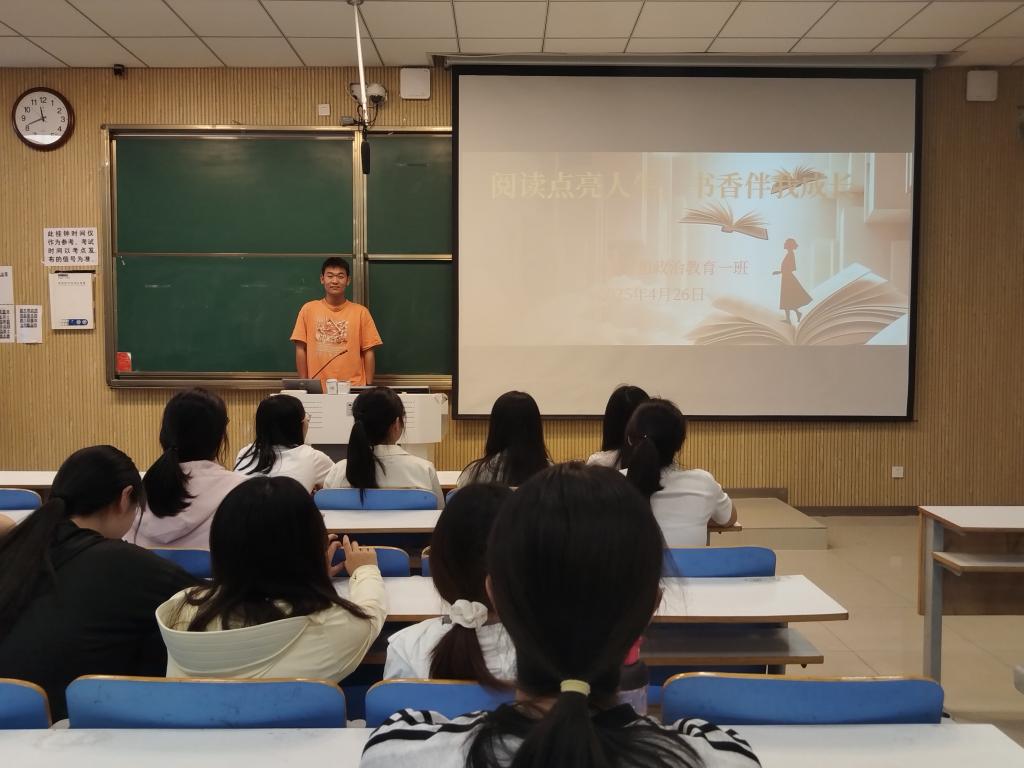 为帮助我班学生培养良好的阅读习惯,在班级中营造浓厚的书香氛围,4月26日上午,金年会jinnianhuicom2024级思想政治教育一班于社科楼515教室开展“阅读点亮人生,书香伴我成长”主题班会。本次班会由副班长马奔主持,一班全体同学参加。