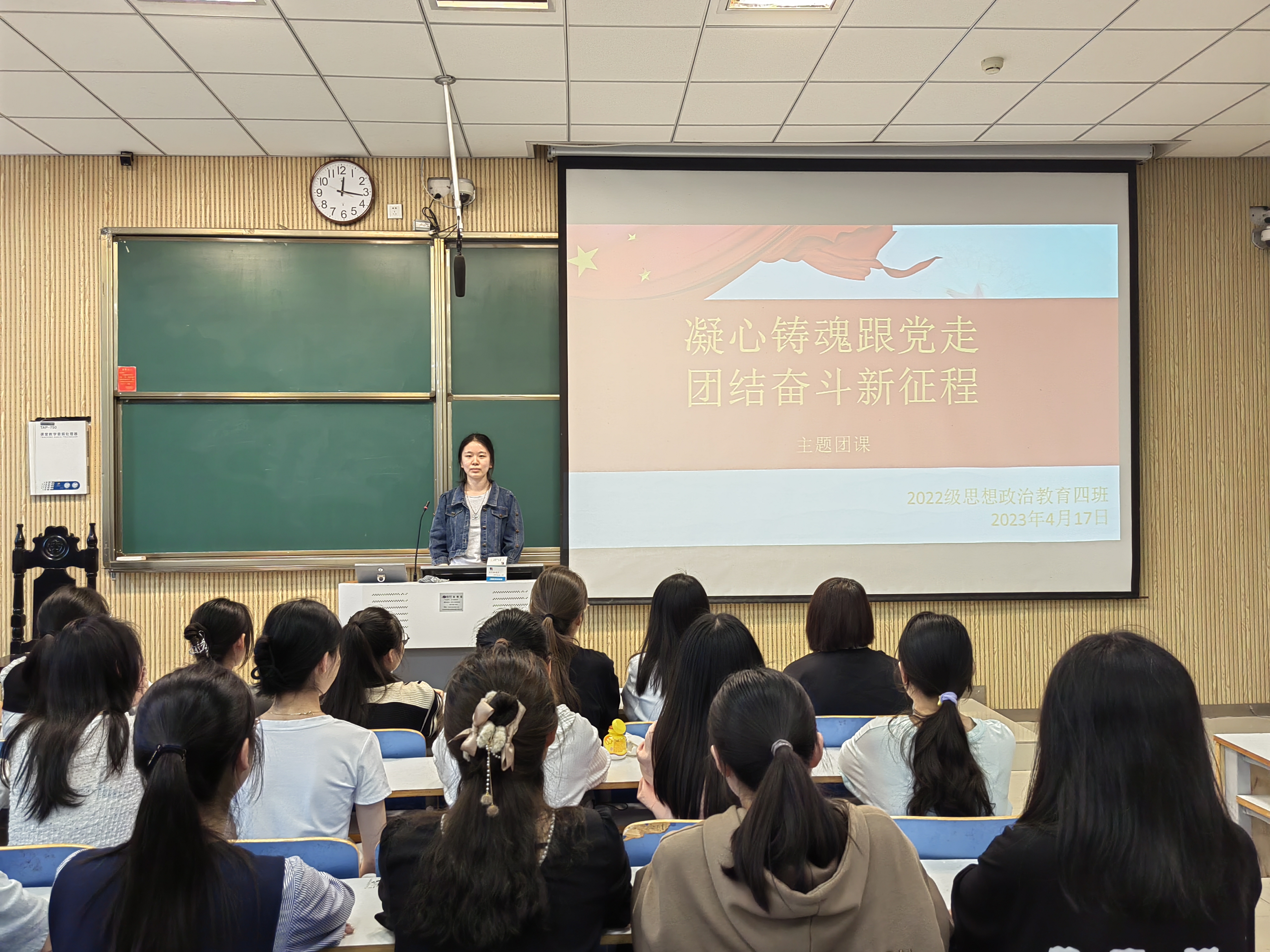 4月17日下午,金年会jinnianhuicom2022级思想政治教育四班在社科楼515教室召开“凝心铸魂跟党走,团结奋斗新征程”主题团课,金年会官网2022级思想政治教育四班全体同学参与本次团课。团课由团支书牛志杰主持。