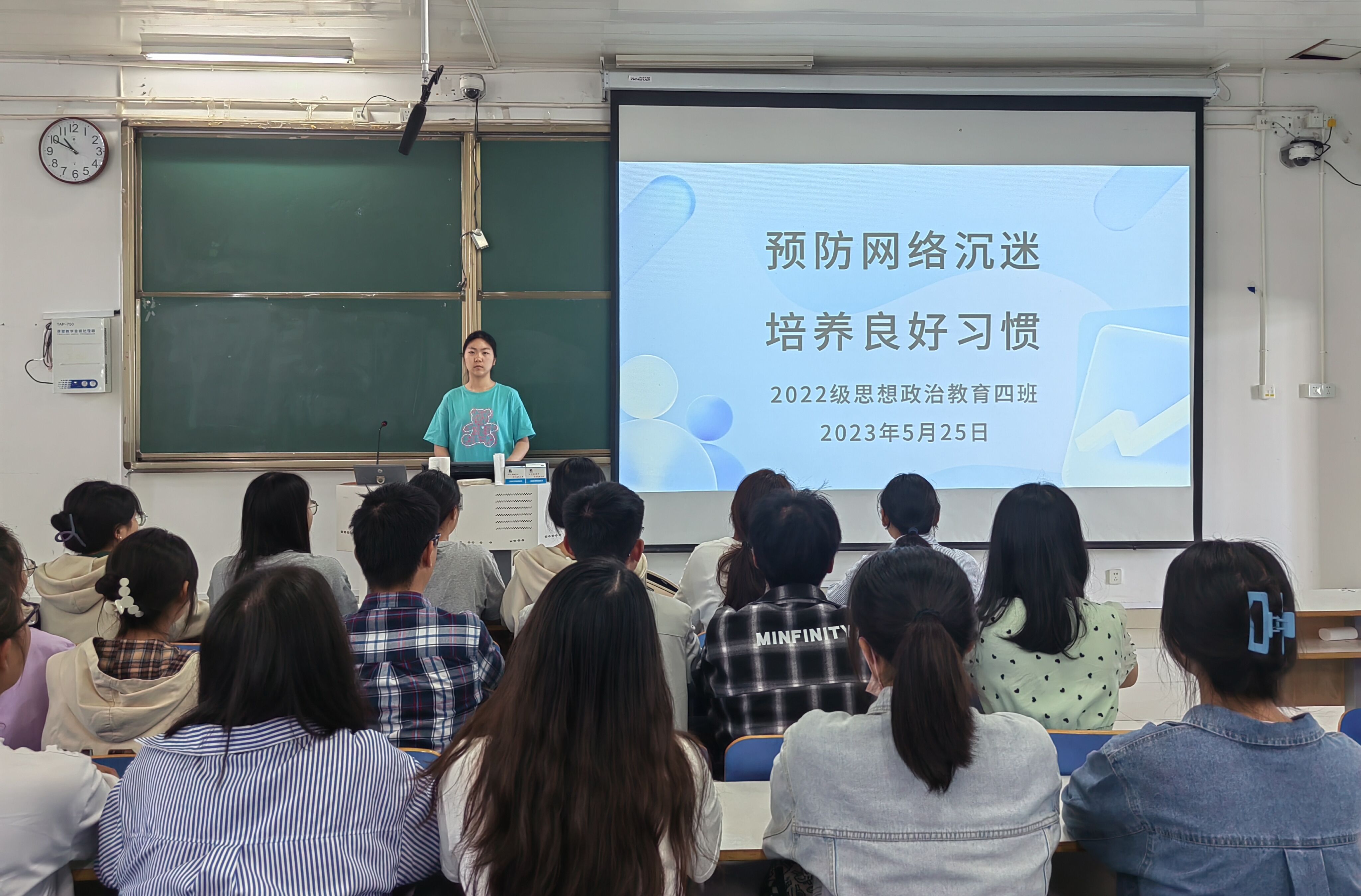 5月25日上午,金年会jinnianhuicom2022级思想政治教育四班在社科楼514教室召开“预防网络沉迷,培养良好习惯”主题班会,金年会官网2022级思想政治教育四班全体同学参与本次班会。班长牛志杰主持班会。