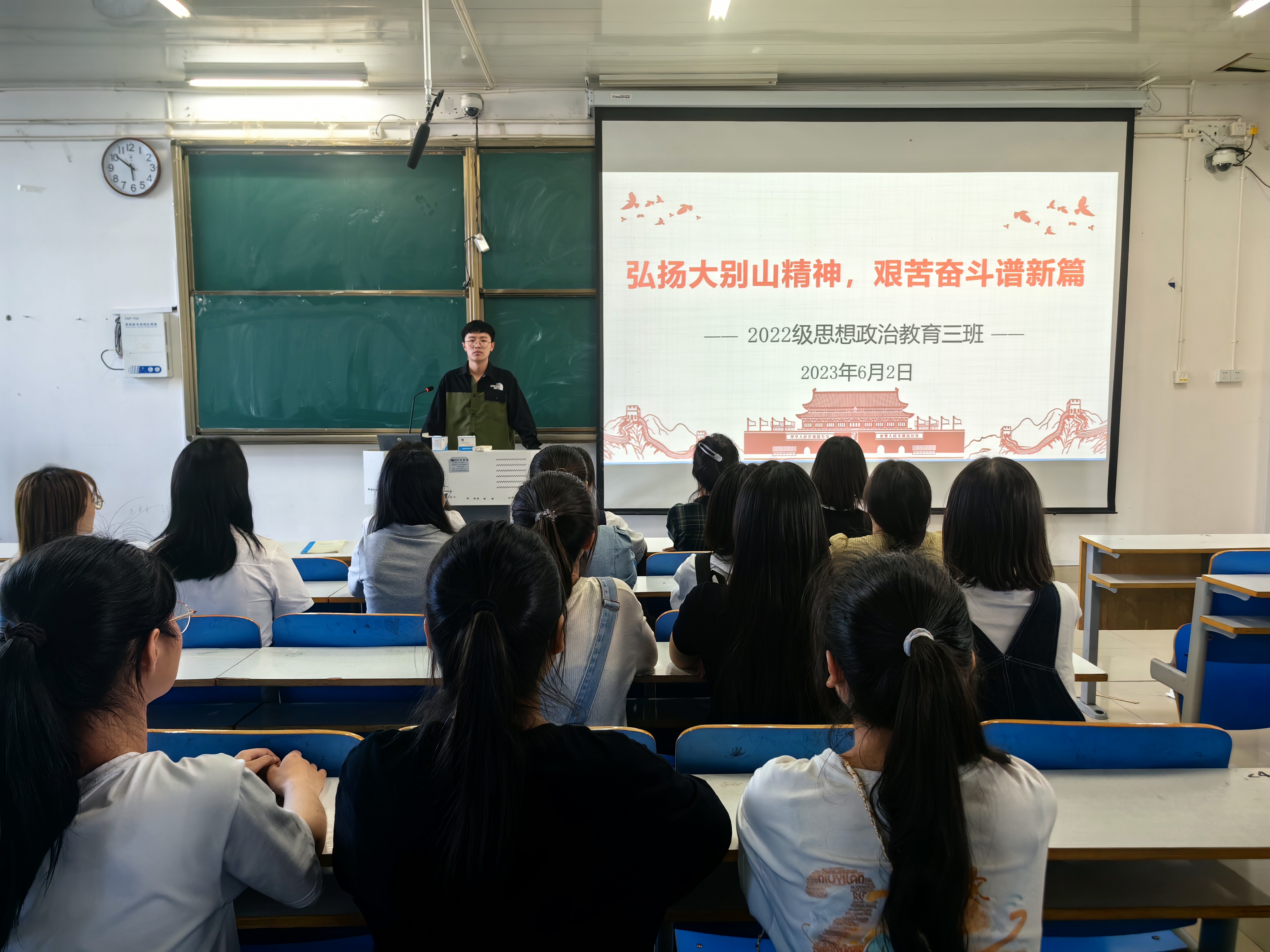 为弘扬大别山精神,增强奋斗信念,6月2日上午,金年会jinnianhuicom2022级思想政治教育三班在社科楼514教室召开“弘扬大别山精神,谱写奋斗新篇章”主题团课。金年会官网2022级思想政治教育三班全体成员共同参加此次团课。团课由团支书余浩洋主持。