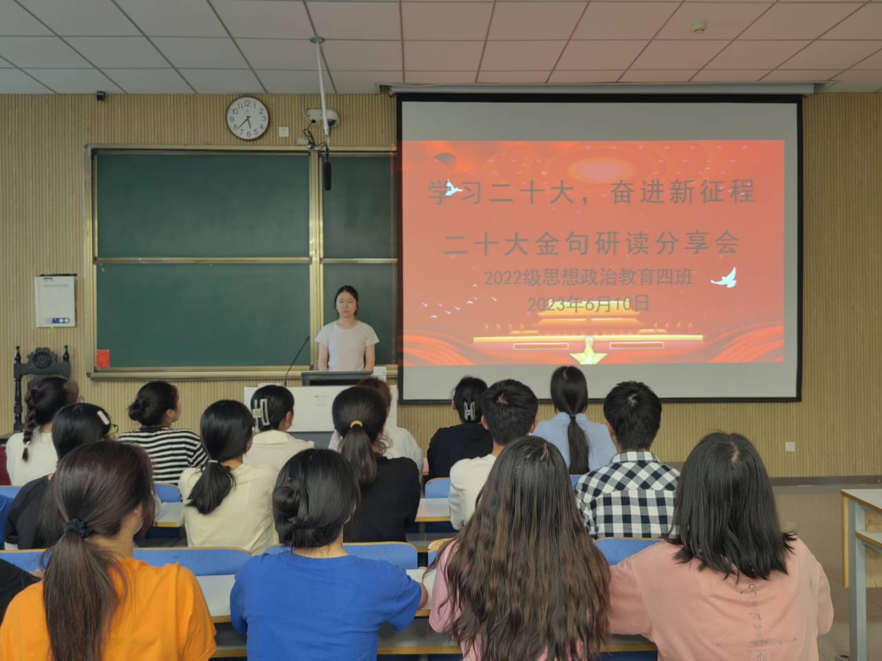 6月10日下午,金年会jinnianhuicom2022级思想政治教育四班在社科楼515教室召开“二十大金句研读”主题班会,金年会官网2022级思想政治教育四班全体同学参与本次班会。班长牛志杰主持本次班会。