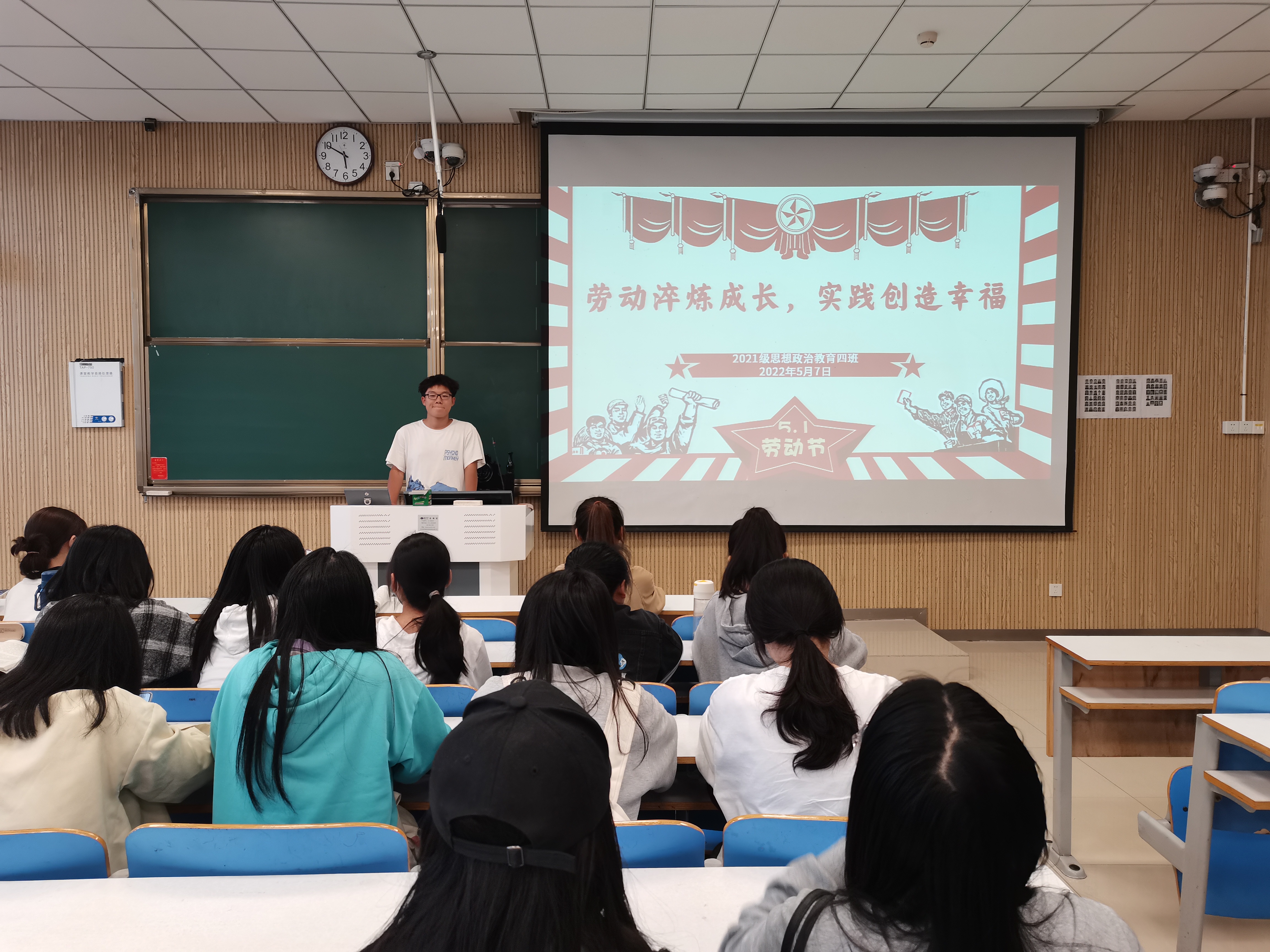 为培养同学们的劳动能力,让劳动精神在青年中发扬光大,5月7日下午,金年会jinnianhuicom2021级思想政治教育四班在社科楼515教室开展“劳动淬炼成长,实践创造幸福”主题班会。2021级思想政治教育四班全体同学共同参会。班会由副班长常康哲主持。