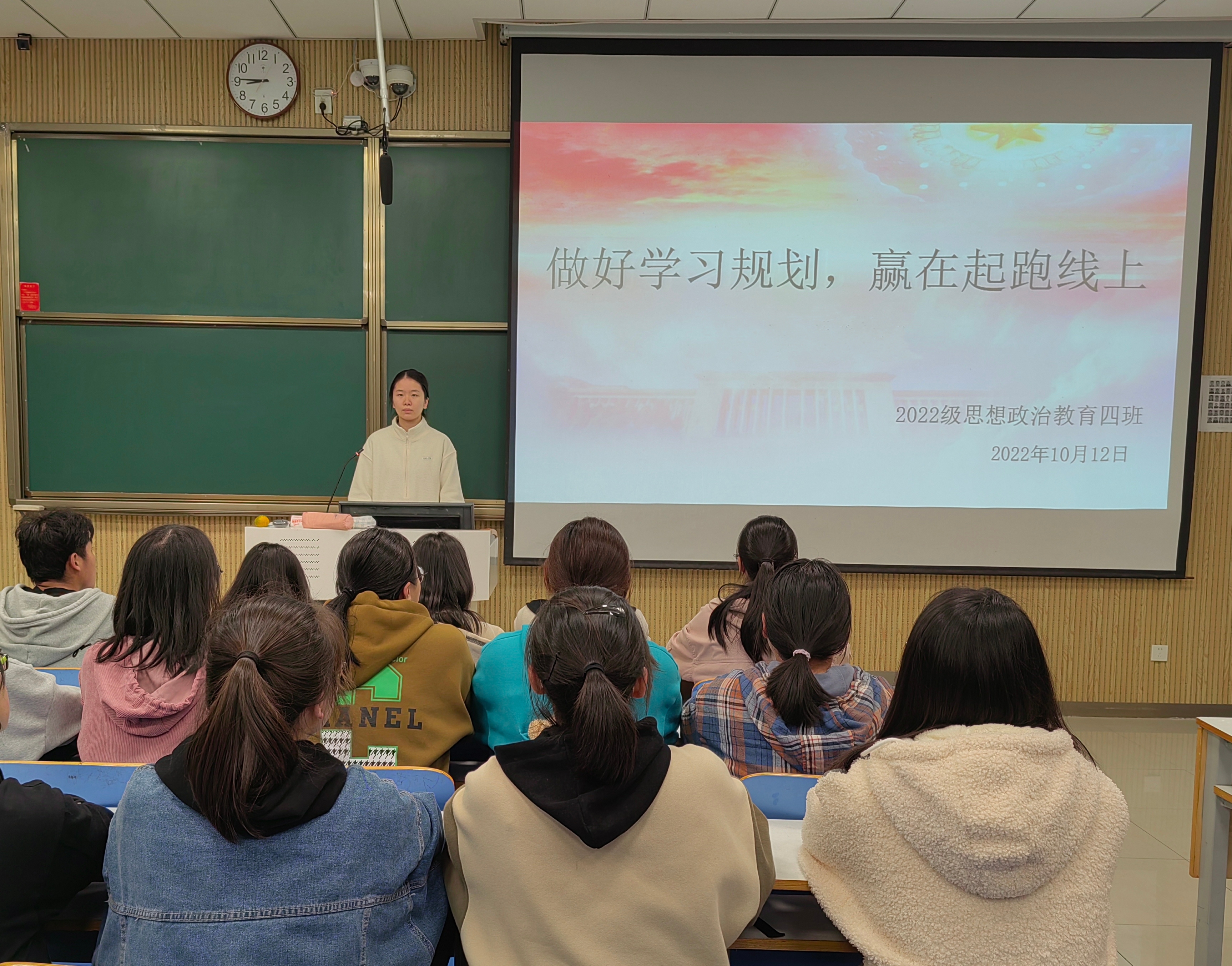 10月12日下午,金年会jinnianhuicom2022级思想政治教育四班在社科楼515教室召开“做好学习规划,赢在起跑线上”主题班会。班会由班长牛志杰主持召开。