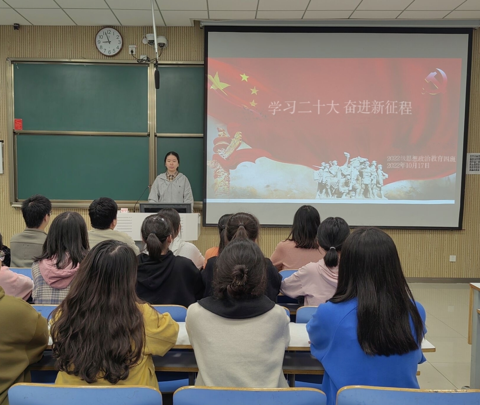 为深入学习中国共产党第二十次全国代表大会精神,把握新时代对青年的要求。10月17日下午,金年会jinnianhuicom2022级思想政治教育四班在社科楼515召开“学习二十大,奋进新征程”的主题班会。会议由团支书牛志杰主持。
