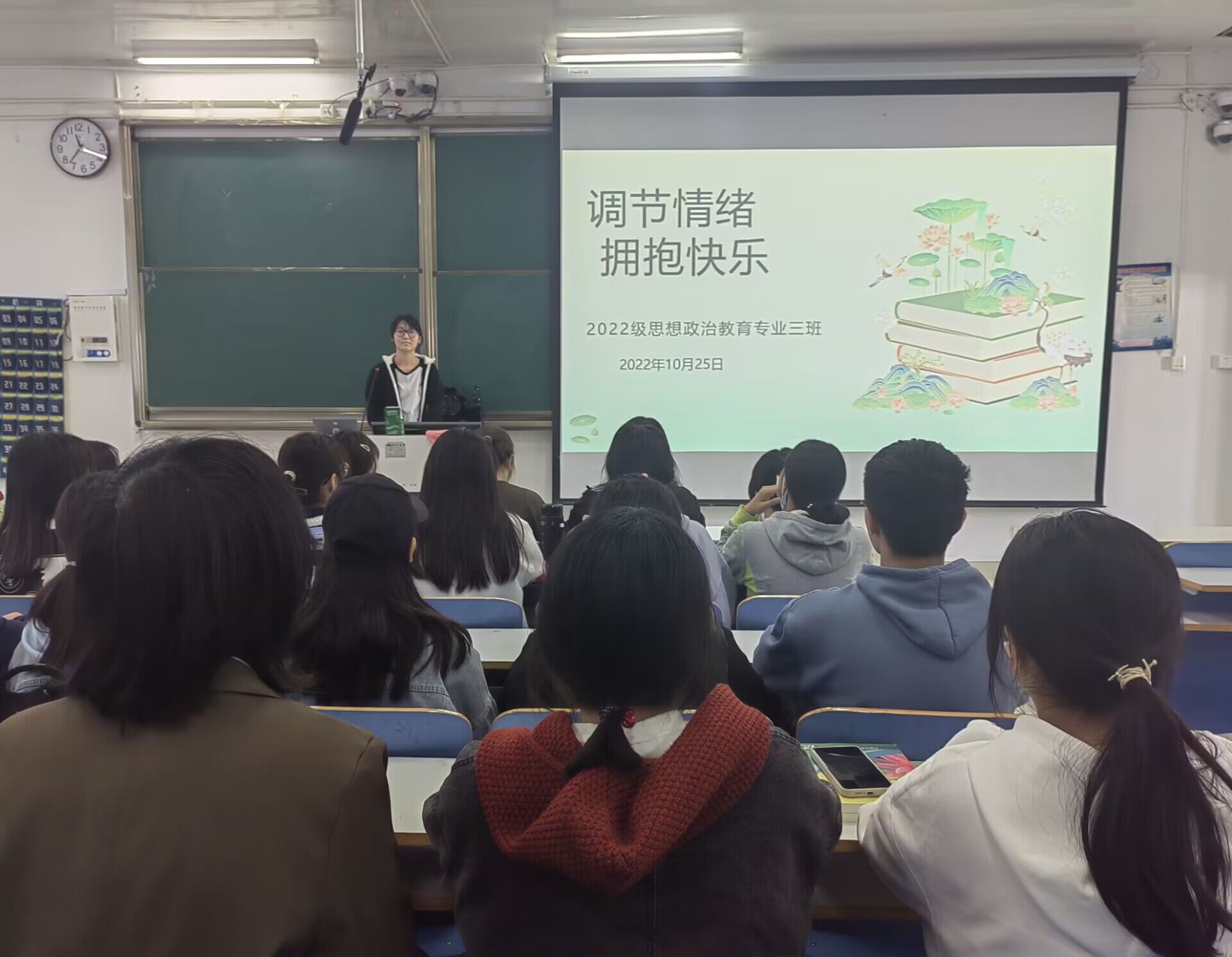 为深入推动大学生心理健康教育,引导大学生积极主动地关注自身心理健康,10月25日上午,金年会jinnianhuicom2022级思想政治教育三班在社科楼514教室召开“调节情绪,拥抱快乐”主题班会。金年会官网2022级思想政治教育三班全体成员共同参加会议,班会由心理委员张韶涵主持。