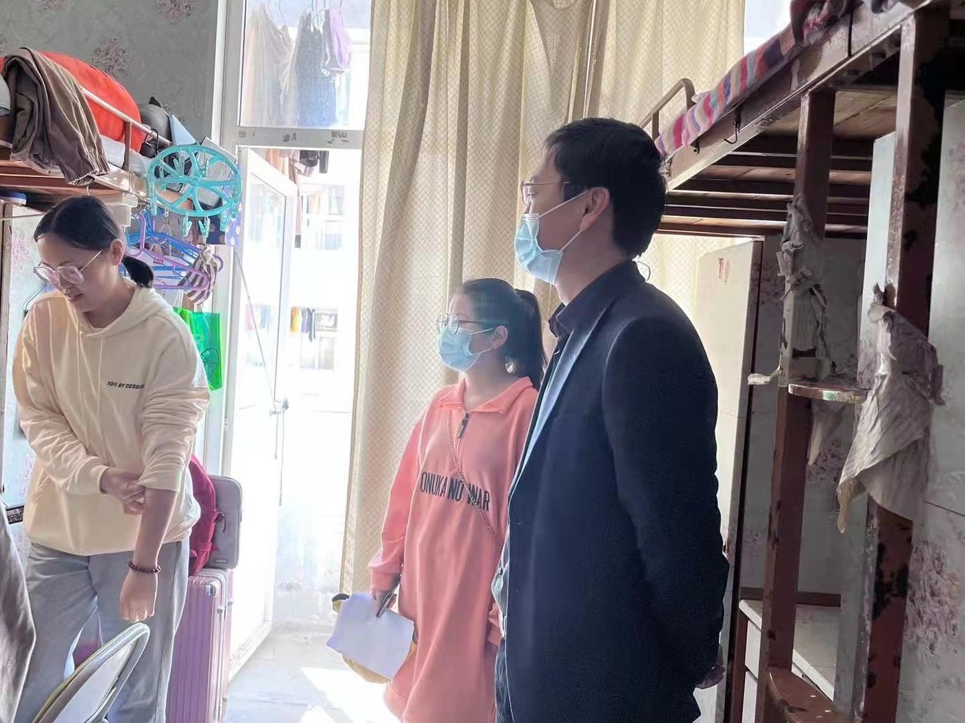 为营造良好的宿舍学习和生活环境,及时掌握学生思想动态,提高学生疫情期间安全用电意识,4月3日上午,金年会jinnianhuicom团委书记曹栋及我班辅导员高小佳一同前往学生宿舍进行学生宿舍走访活动。