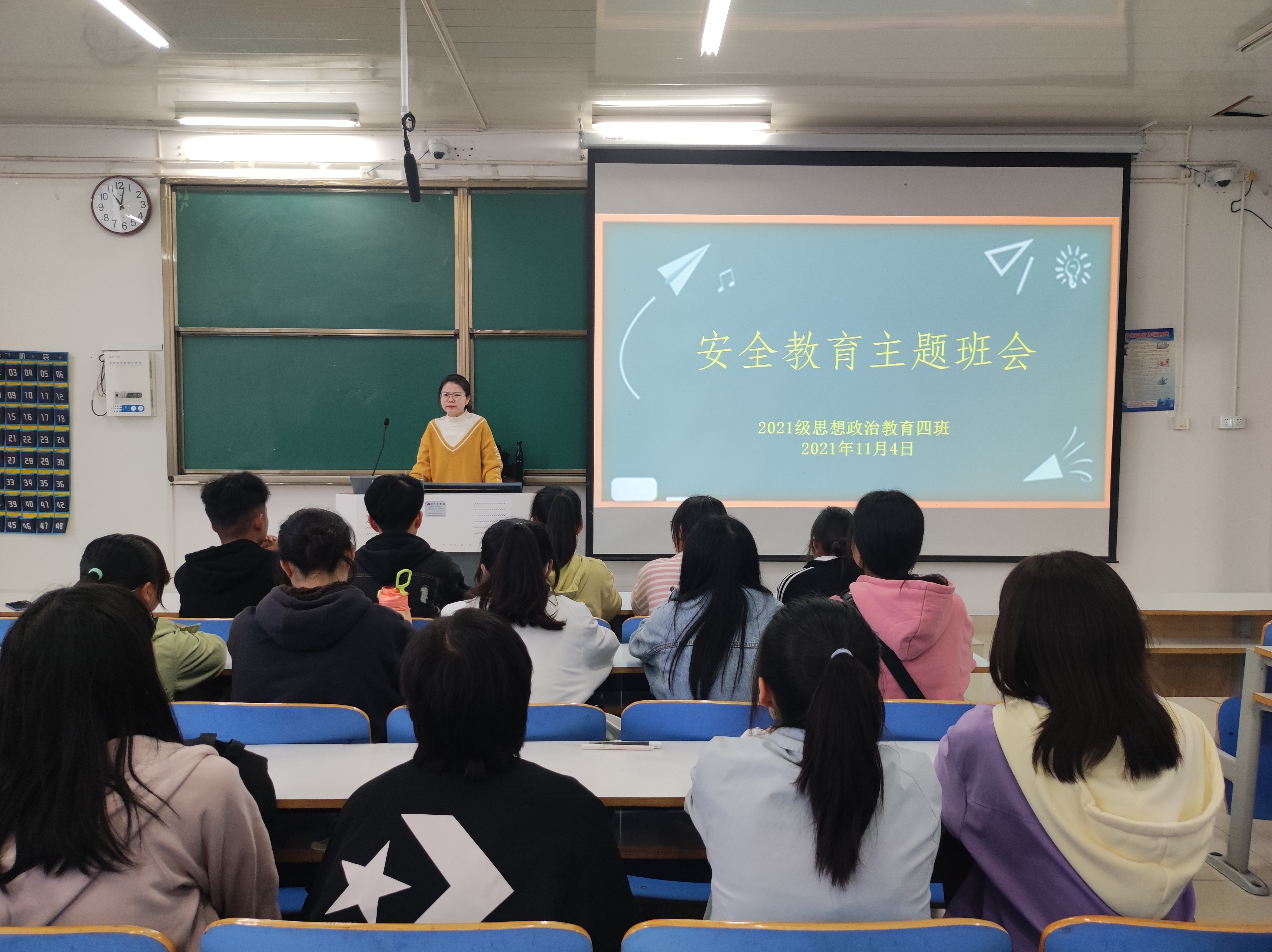 根据《关于开展学生安全隐患大排查工作的通知》精神,11月4号上午,金年会jinnianhuicom2021级思想政治教育四班安全教育主题班会在社科楼514教室开展。2021级思想政治教育四班全体同学参加了本次班会。班会由辅导员高小佳主持。